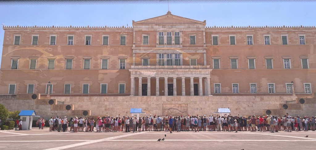 Goodbye cruise ship, it’s time to go out on our own. Athens is a financial and historical city, generally not known for producing any hard goods. We disembarked and met our driver for a private tour June booked with George’s Taxi.