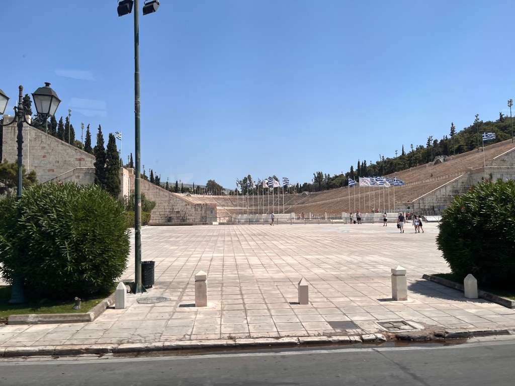 We drove past the Panathenaic Stadium, home of the first modern Olympics in 1896, the ancient one being in Olympia, which is 4 hours out of Athens.