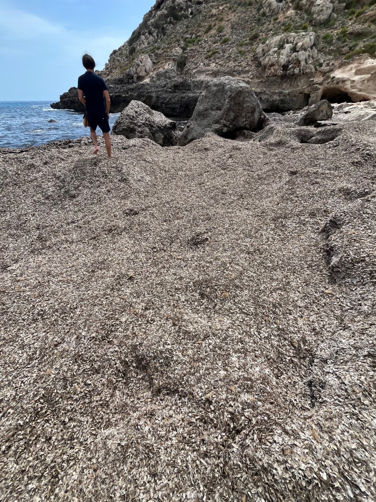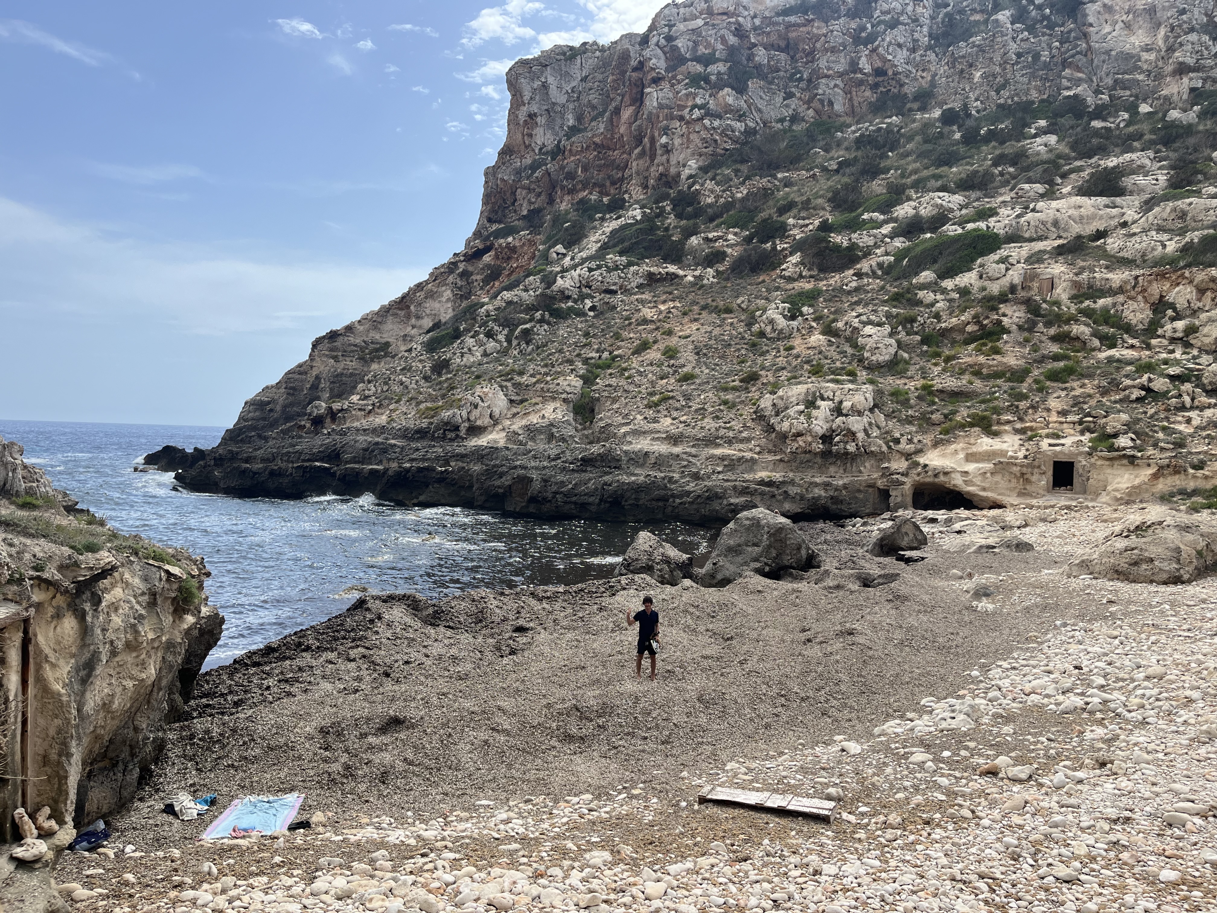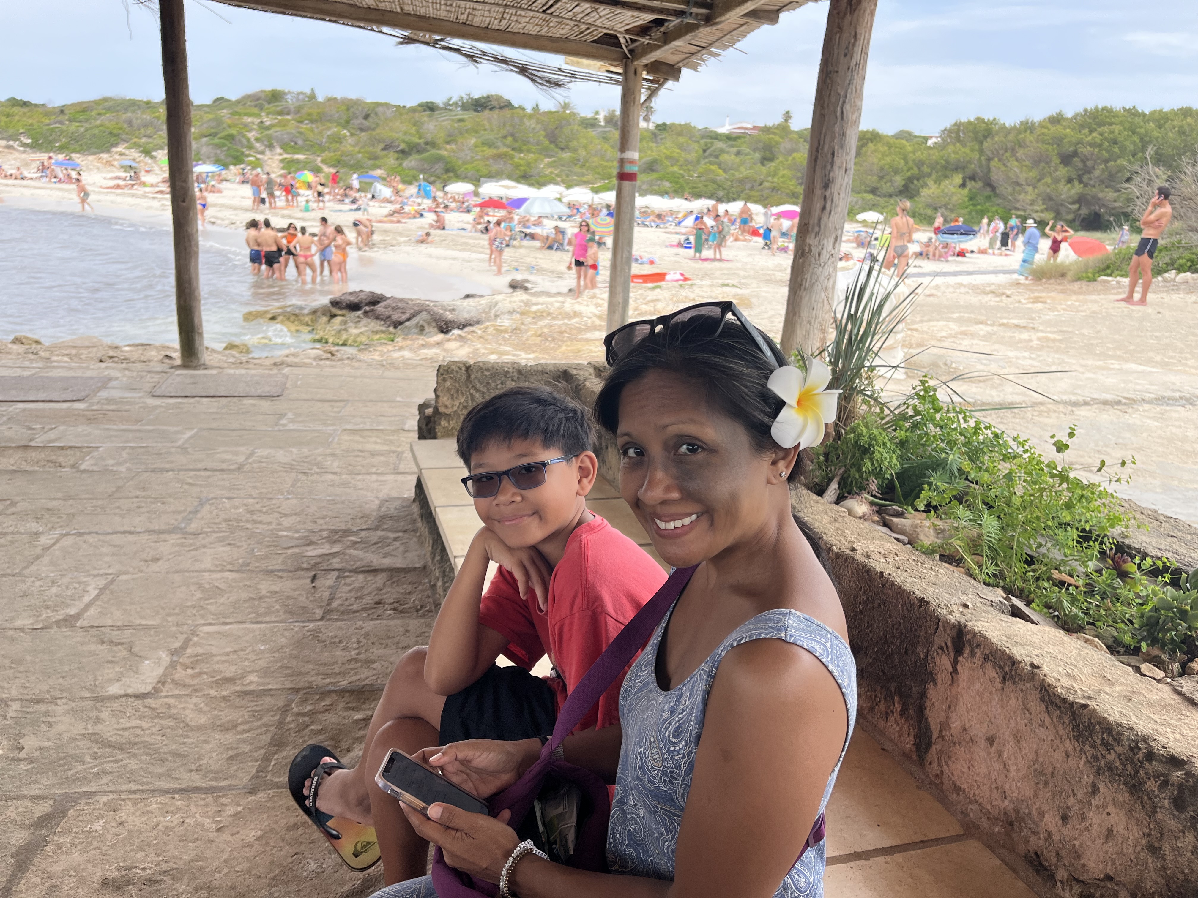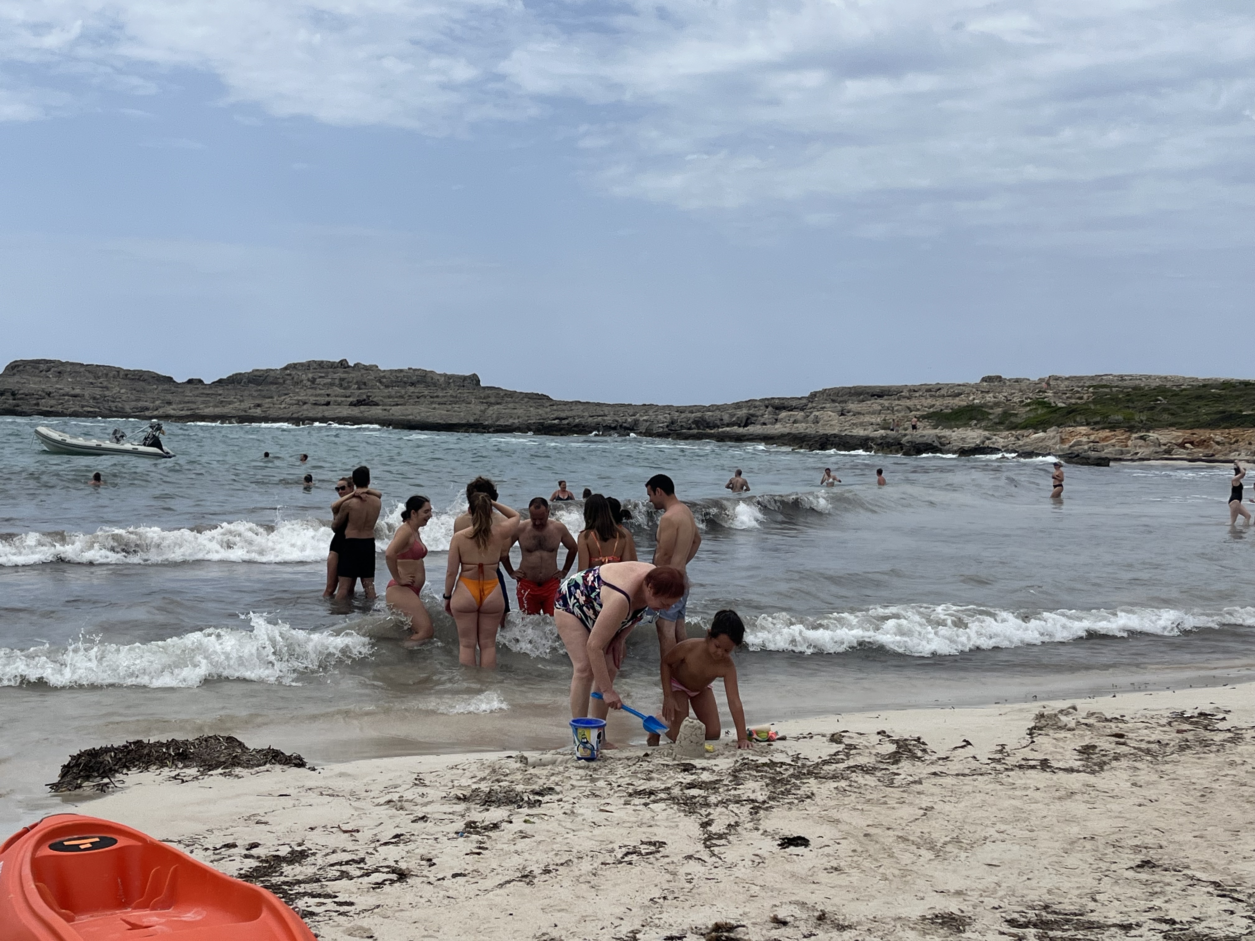 Then off to our first beach-Son Bou. Menorca is supposed to have 365 beaches and I think we hit 6 on our trip. This one was crowded. I think it’s the equivalent of Menorca’s Waikiki Beach. Easy access, several of the more secluded beaches elsewhere require a short 10-30 minute hike to get to. The water was chilly but nice. June and I had to take turns going to the beach since Hudson was crashed out on the backseat of the rental. Oh the body positivity was refreshing. Lots of small swimsuits or topless women. Good perspective on our American customs. I got lots of stares but it was probably because it seemed like I was the only Asian on the entire beach. Not to mention my blue straw hat and moustache.