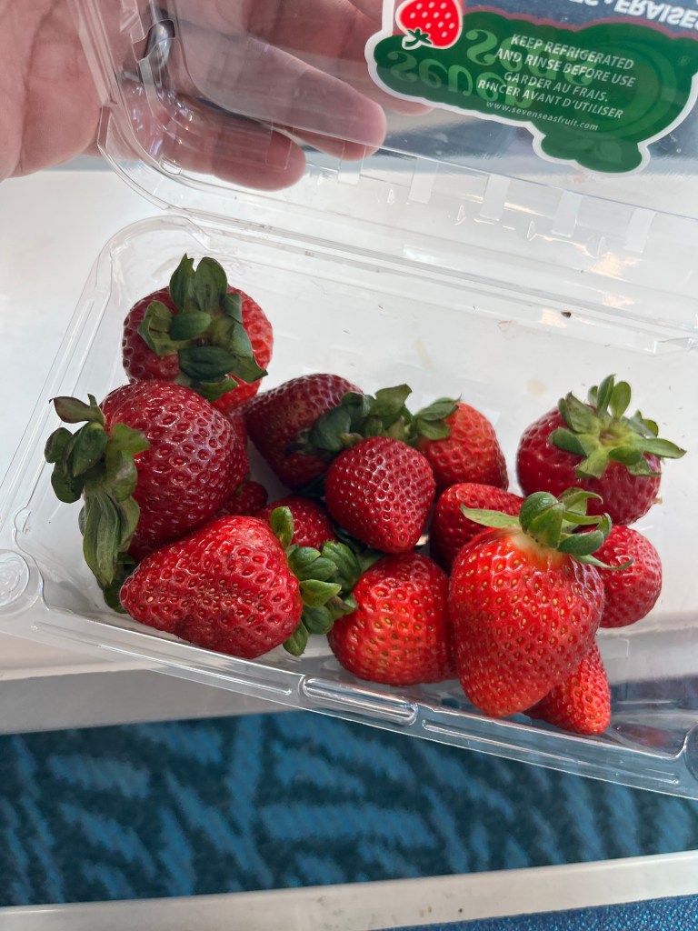 Since we didn’t know if there was food back on the plane I veered off at the bus stop to get Strawberries. When the bus showed up I had to make a run for it.