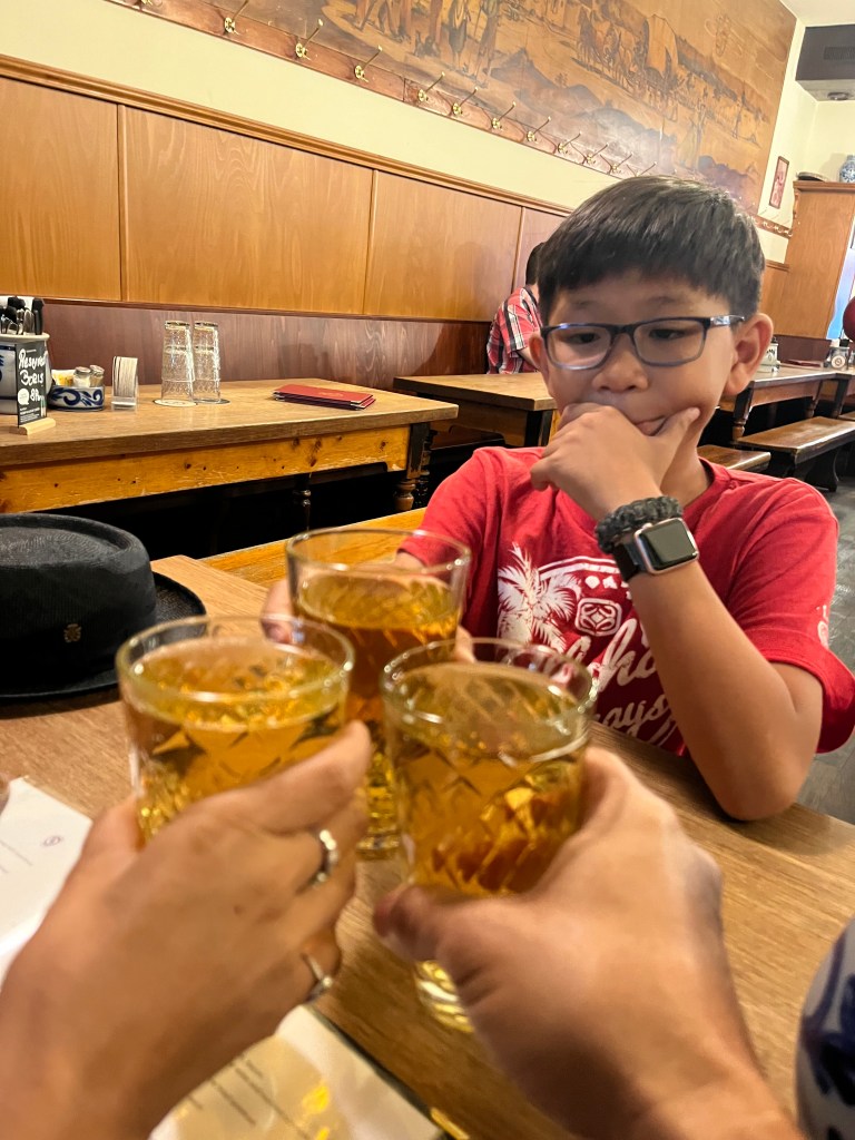 We just arrived and have an hour until our room is ready. Hudson is hungry and June is navigating us to a homestyle restaurant-Adolf Wagner or as I meant to say Apfelwein Wagner.