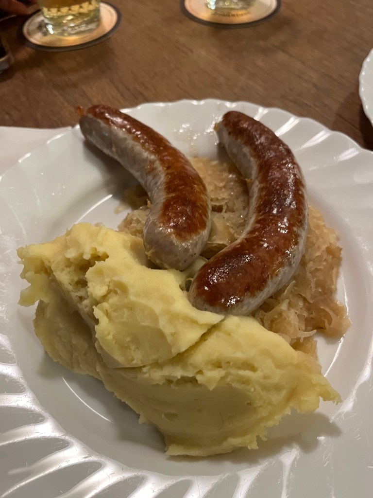 Day 2. We’re kicking off our first full day going full blast food at noon at a traditional restaurant called Atschel in the area of Old Sachsenhausen-a traditional German town with lots of apfelwein places to eat at. We’re making up for lost food from yesterday as you will see.