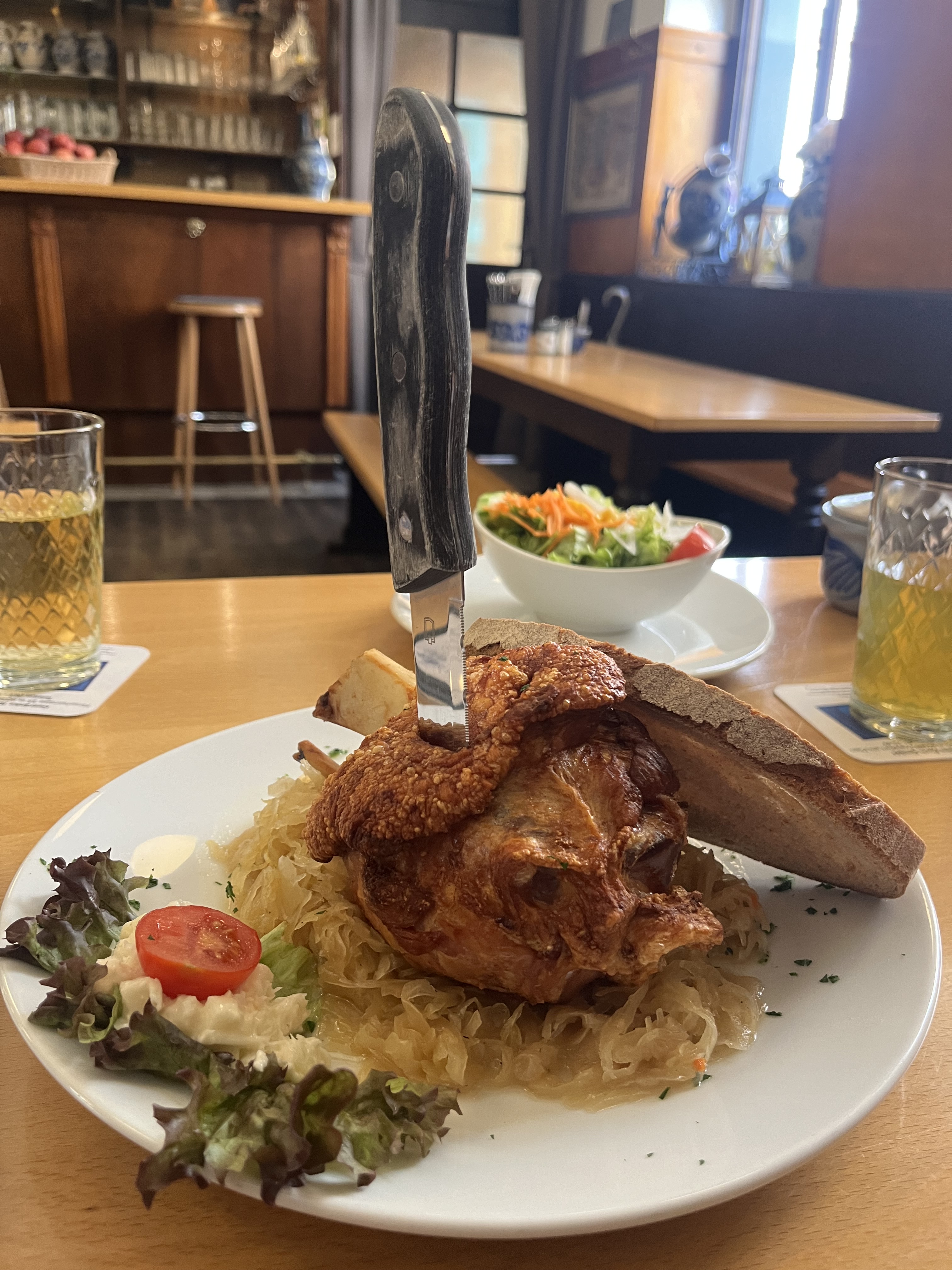 The main drink here is apple wein. Apple juice for hud. There must be plenty tourists because the dude at the front told a few people that they don’t serve beer. lol. Note the glass pattern.