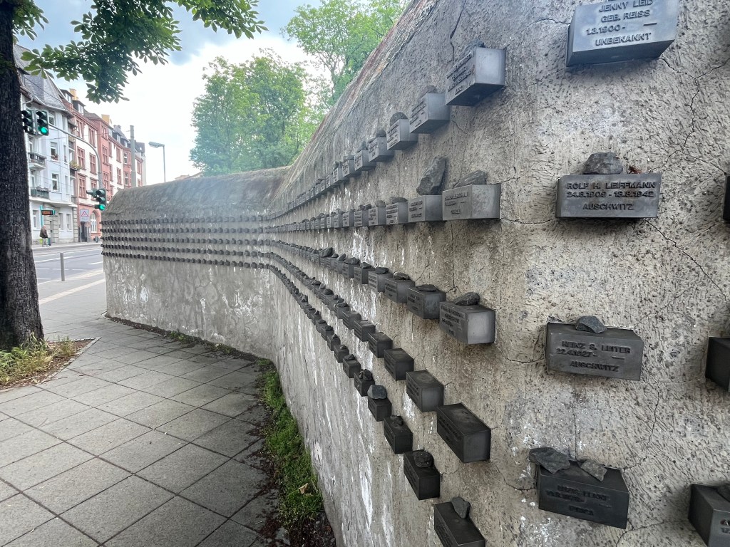 Next we had a solemn visit to a the Jewish museum Museum Judengasse and adjacent cemetery. Lining the outside of the cemetery are tiny squares as a memorial to each deceased Jewish including the location of death. The rocks placed atop symbolize that someone is thinking of the deceased.