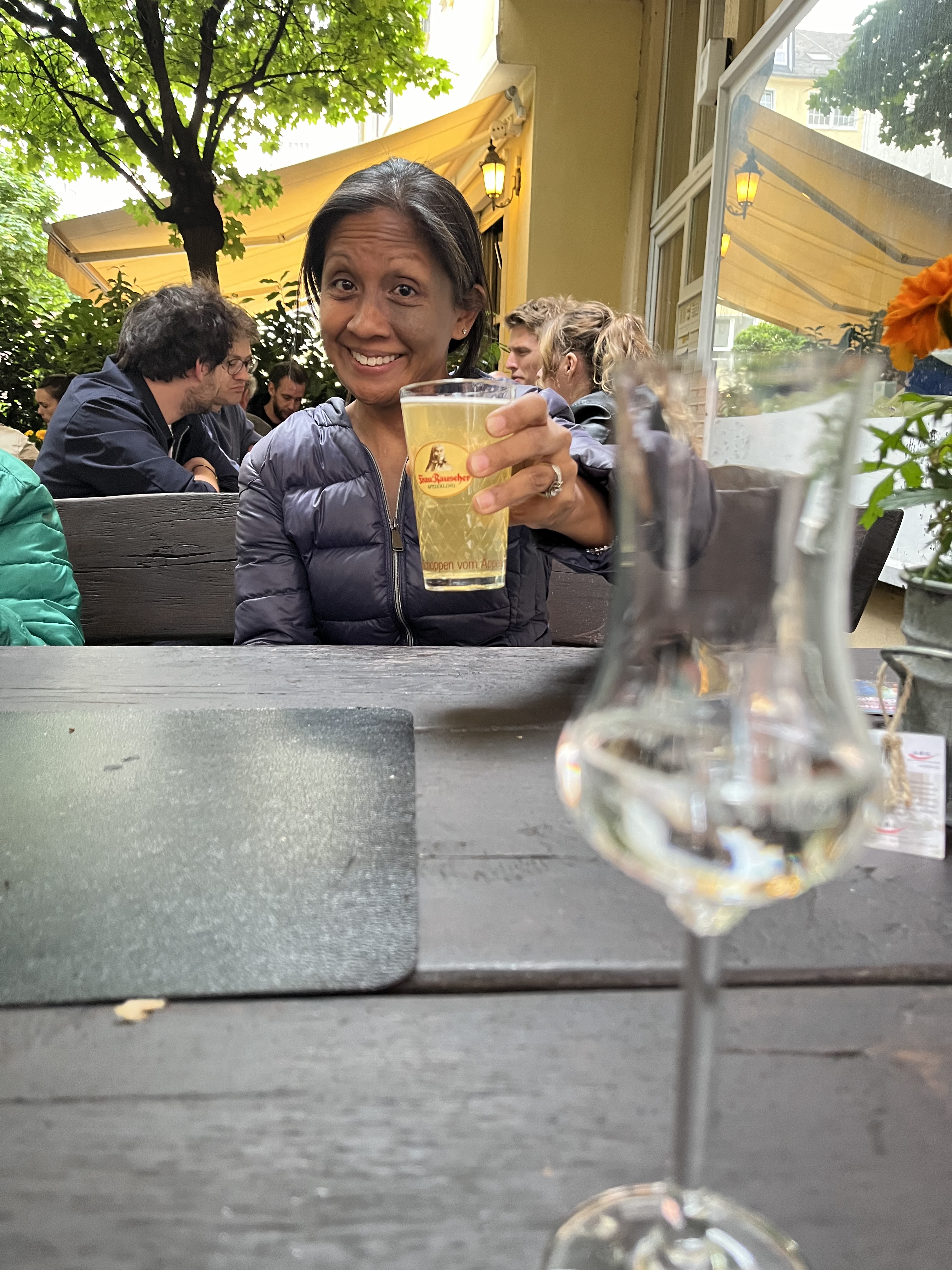 Drinking notes-Dark beer is surprisingly hard to find here. People (mostly scrubby men) drink on the subway. Not rowdy like, just drinking casually and talking. June developed a like for mixed light drinks such as radlers or applewein mixed with fruit juice.