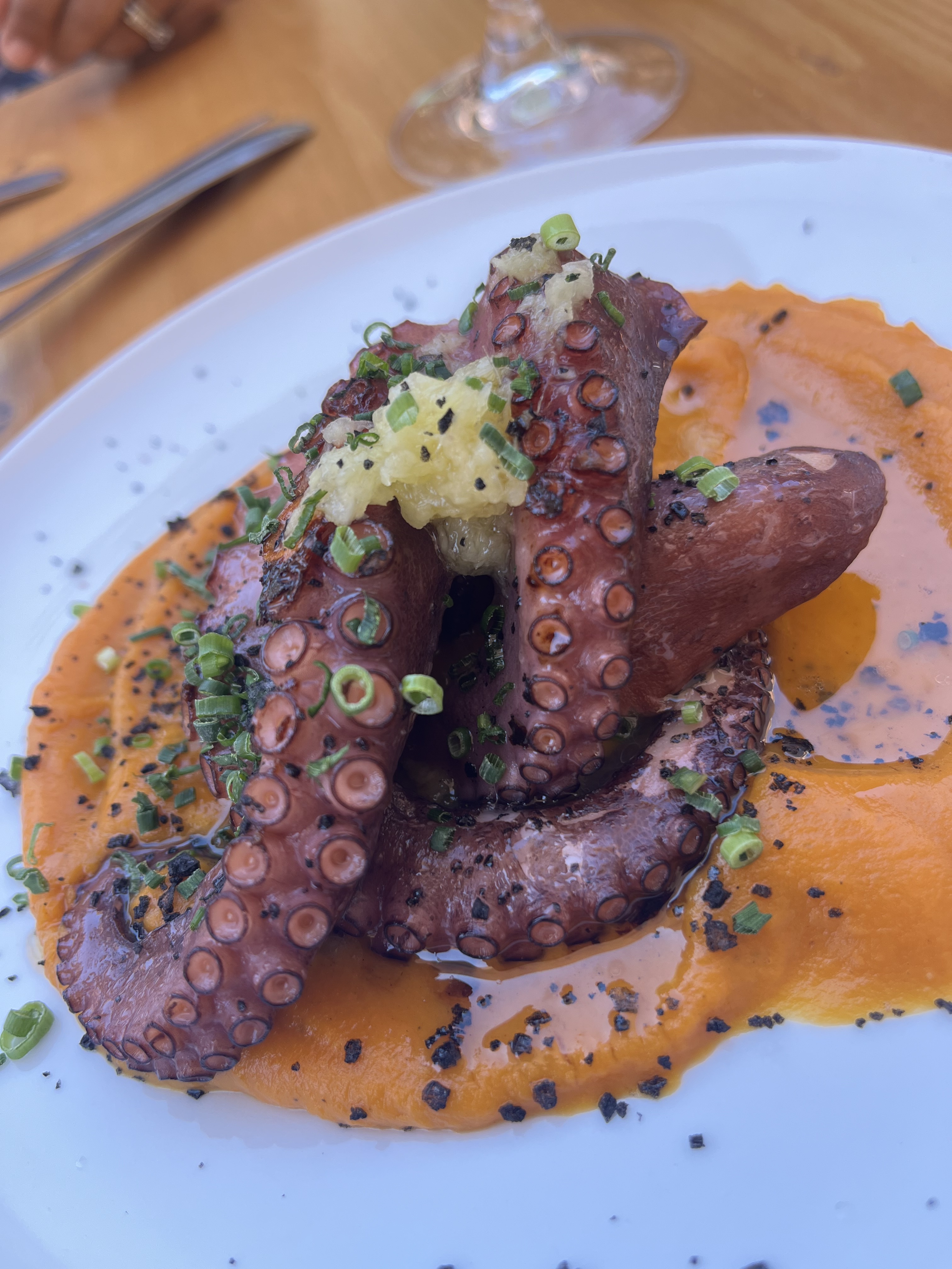 Octopus, suckling pig and prawns three ways. Locally sourced from fishermen and growers. Advertised on the website and menu this is how lots of Europe just does it. Italy, Greece, seasonal and local. Logistically makes the most sense. The meal was a bit pricey but delicious.