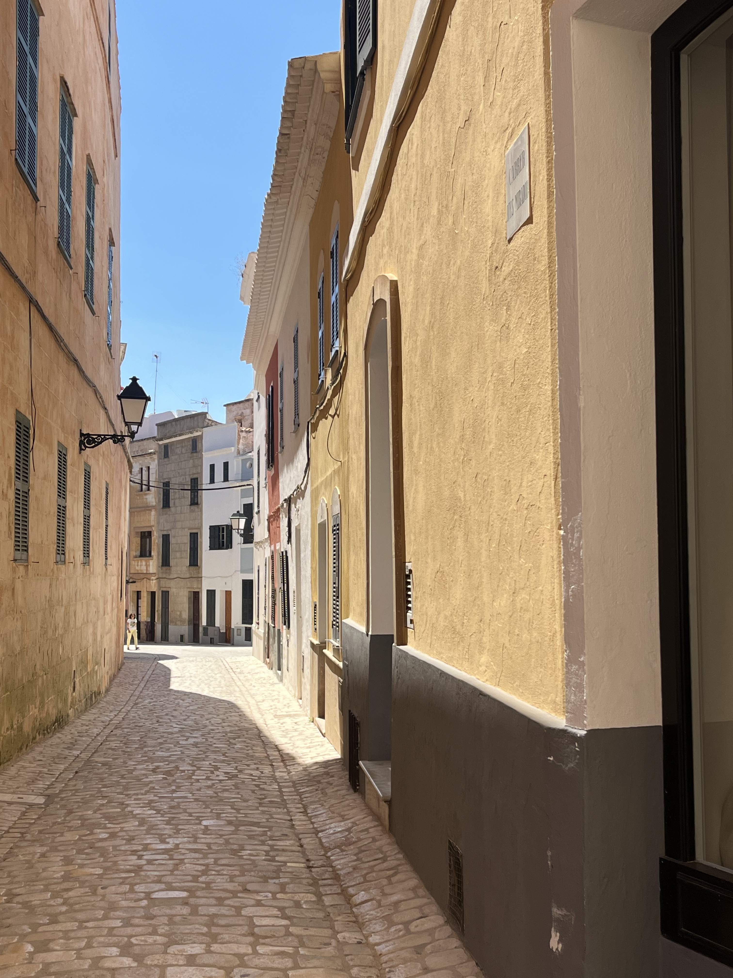 We walked about the empty cobblestone streets thinking about how it looked like a combination of Crete and Porto Venere with a touch of Cuba….This turned out to be the best place to explore buildings on Menorca for us.