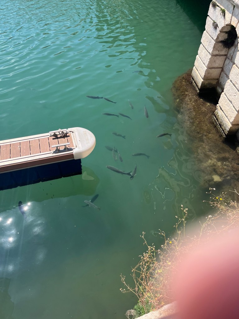 Ciutadella has its own water inlet which was used for port back in the day. Big mullet and my fingertip.