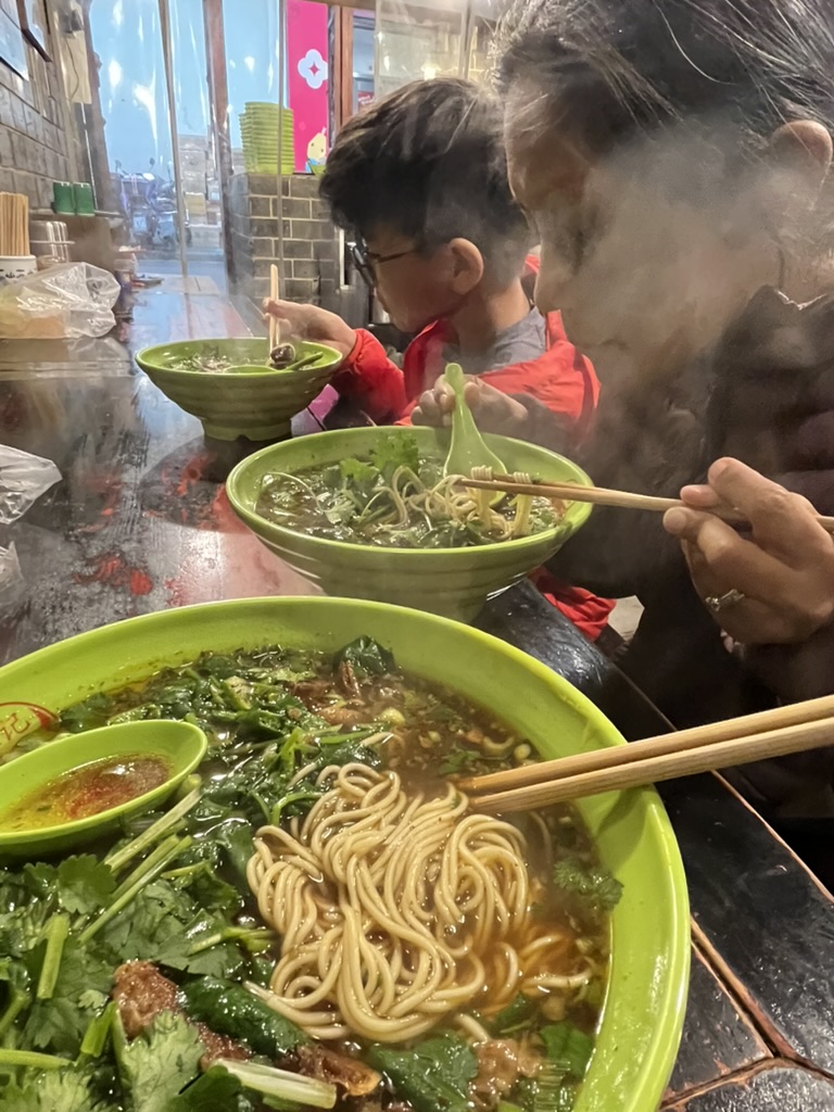 We did find a mom and pop place for beef noodles that sold mainly just beef noodles. It was run by what looked like a husband and wife and their white cat named Mimi who stood out against the dark interior of this small place. It sat maybe 15 people. They loaded up the cilantro and the chunks of meat were hearty and glutinous (?). I really liked the feel of this place.