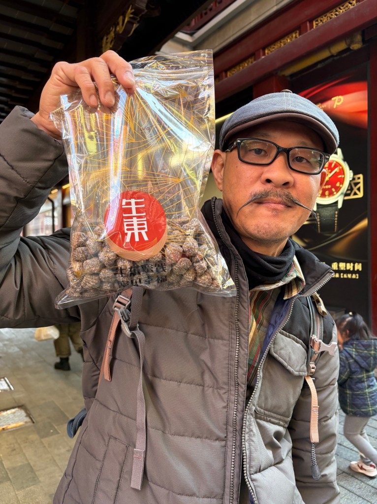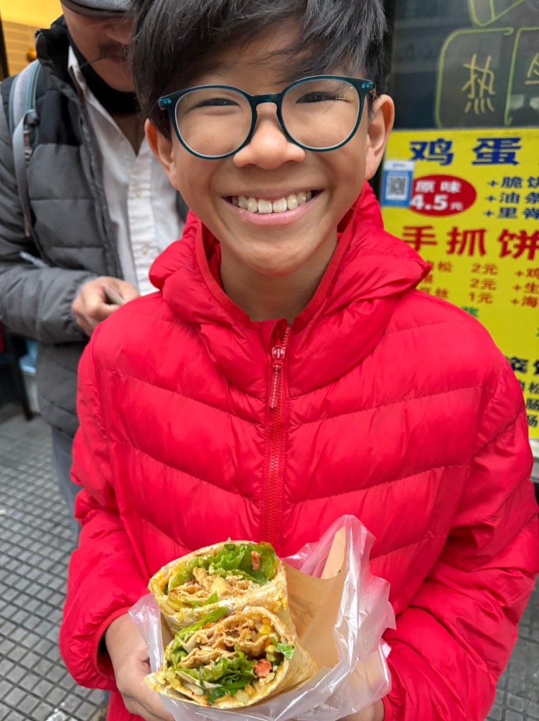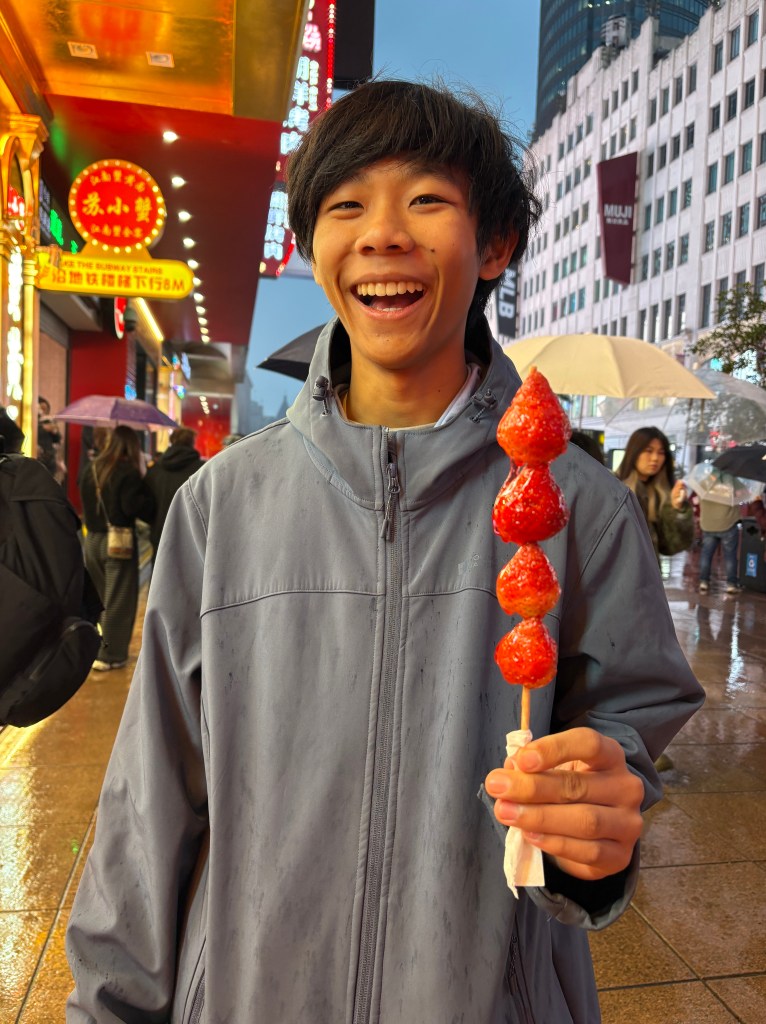 Oh there’s Paxton. Got him while buying a tanghulu. Hard candy covered sticks of fruit, some places even have tomato on their sticks. Not Shanghai though.