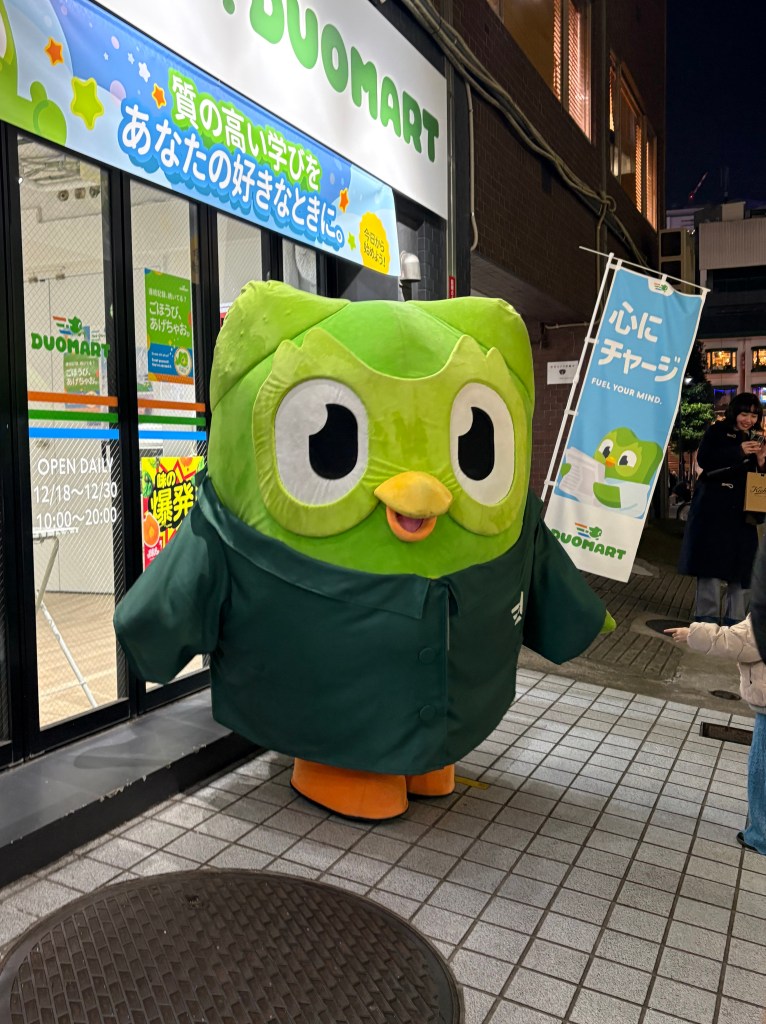 Got our metro cards in order and went to Shibuya. Just double checked that the Adidas CNY jackets weren’t available here. Yesss. Only China. Waded across the famous Shibuya crossing and as we passed an Ichiran ramen we got a time voucher that came with a roughly 1.5 hour wait checkable online. Perfect since we pretty much just ate and we want to wander around first. June was so excited to see the Duomart. They were all out of tickets for today. Duolongo+mart=Duomart