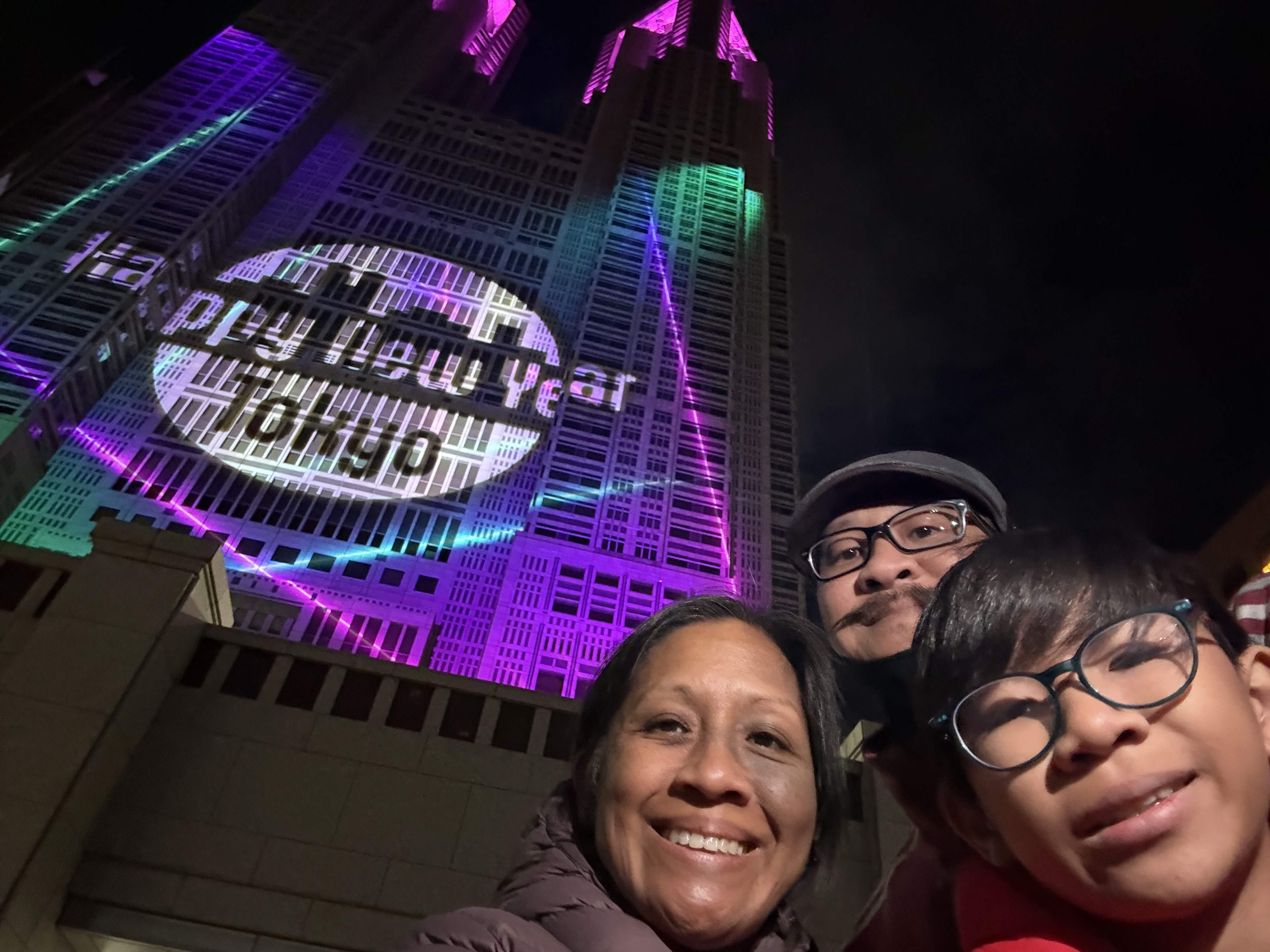 Tonight we celebrated New Year’s Eve at the Tokyo Metropolitan government building. It was a wholesome show with dancing by the neo geisha, mplusplus dancers and a breakdancer as well as Hello Kitty and friends. Oh also the mayor of Tokyo said a few words. Very tame. Fairly organized. The only people clapping and cheering were the tourists. Cultural difference. Overall it was a clean way to celebrate. They even gave us hand and shoe warmers before going in which was great because it got pretty cold standing there.
