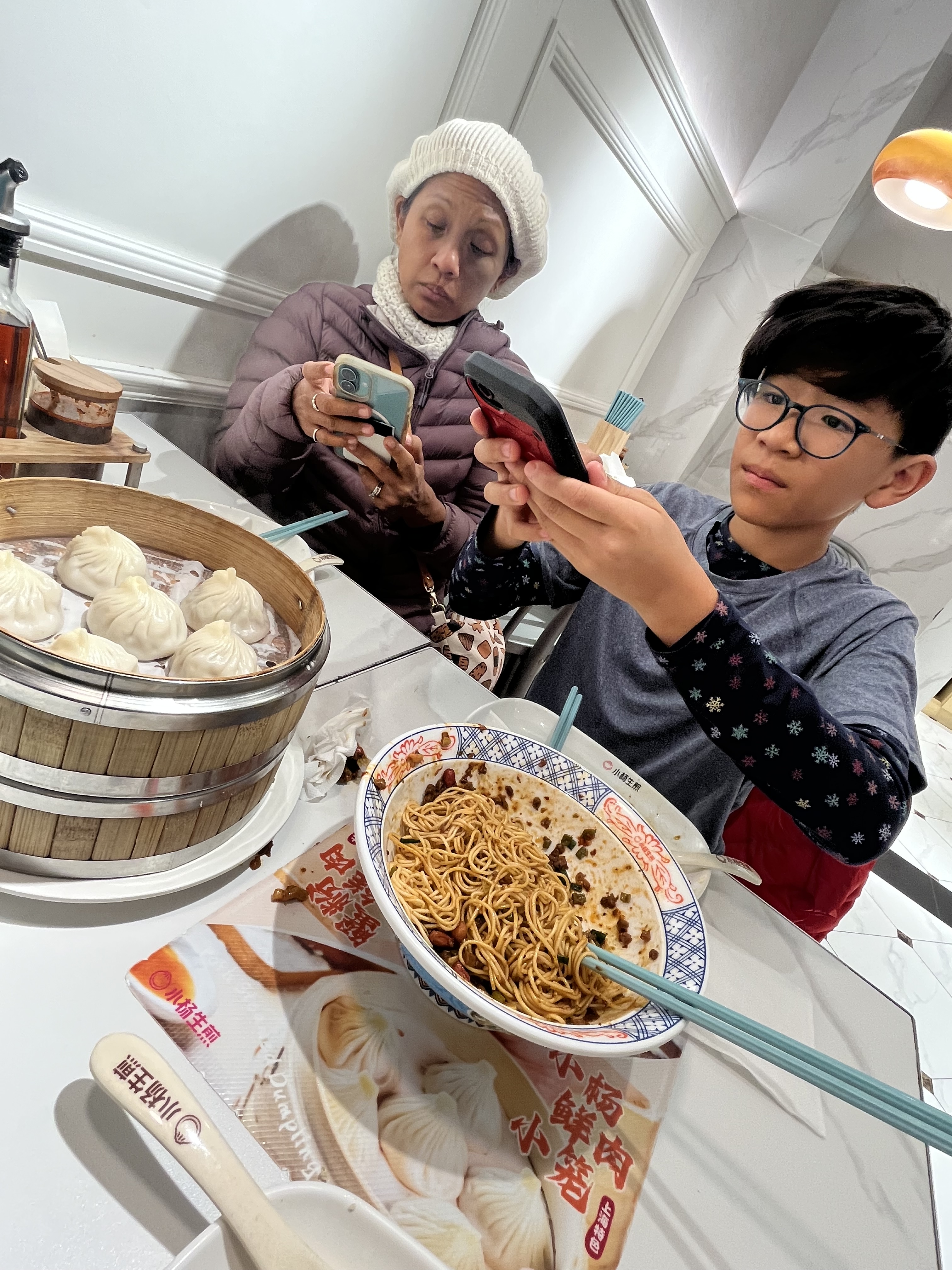 Google was kind of weak so we’re mostly using Apple Maps which wasn’t great. Our first meal was a place called Yangs. Soup dumplings-I think it was one meat and one crab, six pieces each, some spicy noodles and four SJB for around $10 US!
