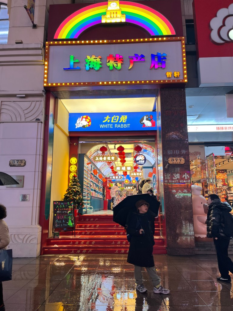White Rabbit candy is heavily marketed. Lots of signage for this brand. On Nanjing Lu there are several places that have them. You can buy all kinds of flavors like banana, green tea and durian.