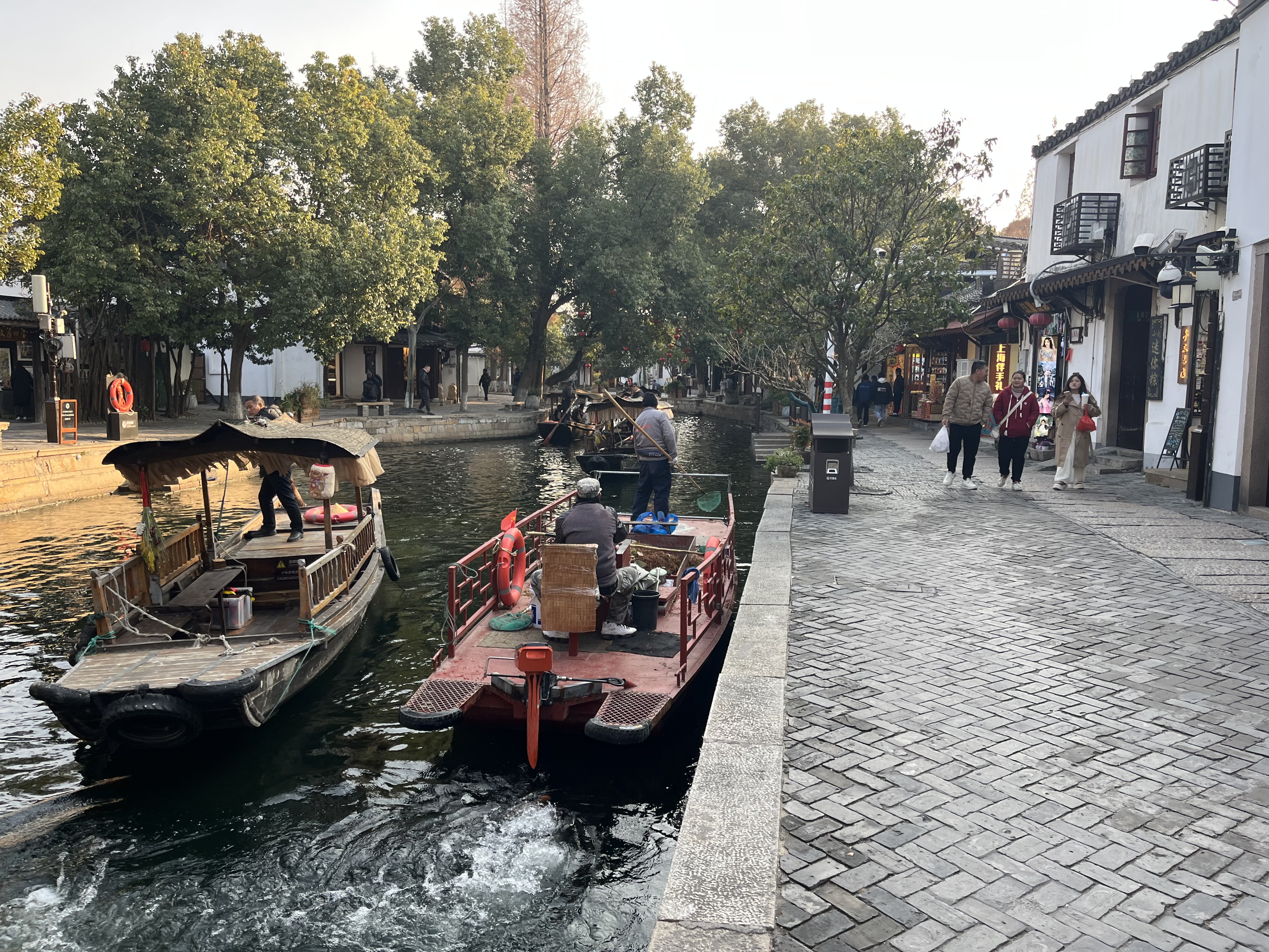After church we met up with June and caught a roughly one hour Didi ride to Zhujiajiao Watertown where Paxton was doing a field trip. Zhujiajiao is an ancient town with Venice-like canals and stone bridges that’s been preserved for visitors.