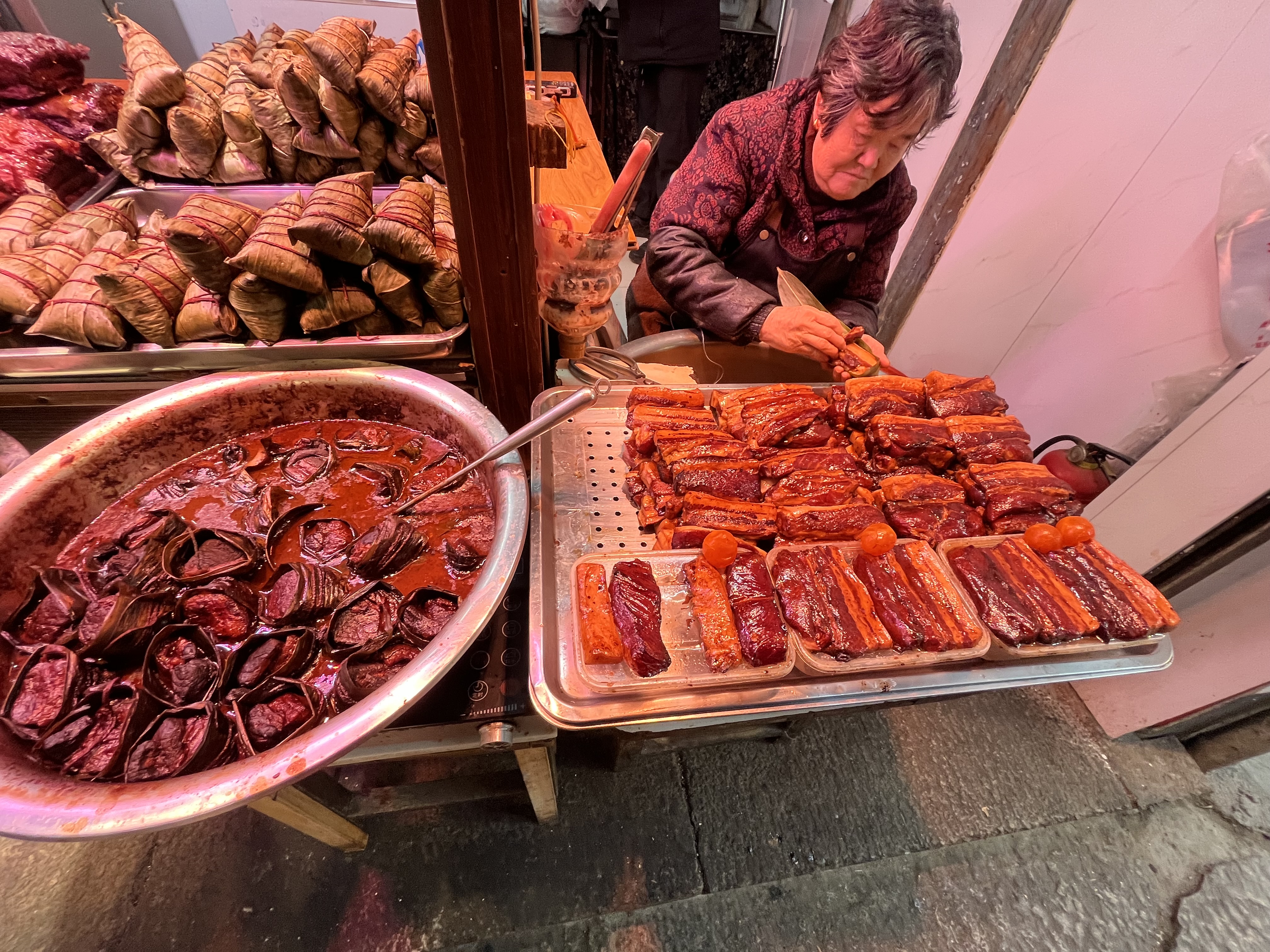 One of the specialties here is a braised meat with sticky rice. Pax and his group were making them when we found him.
