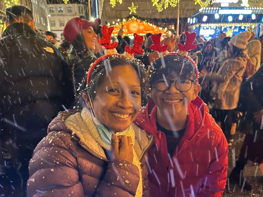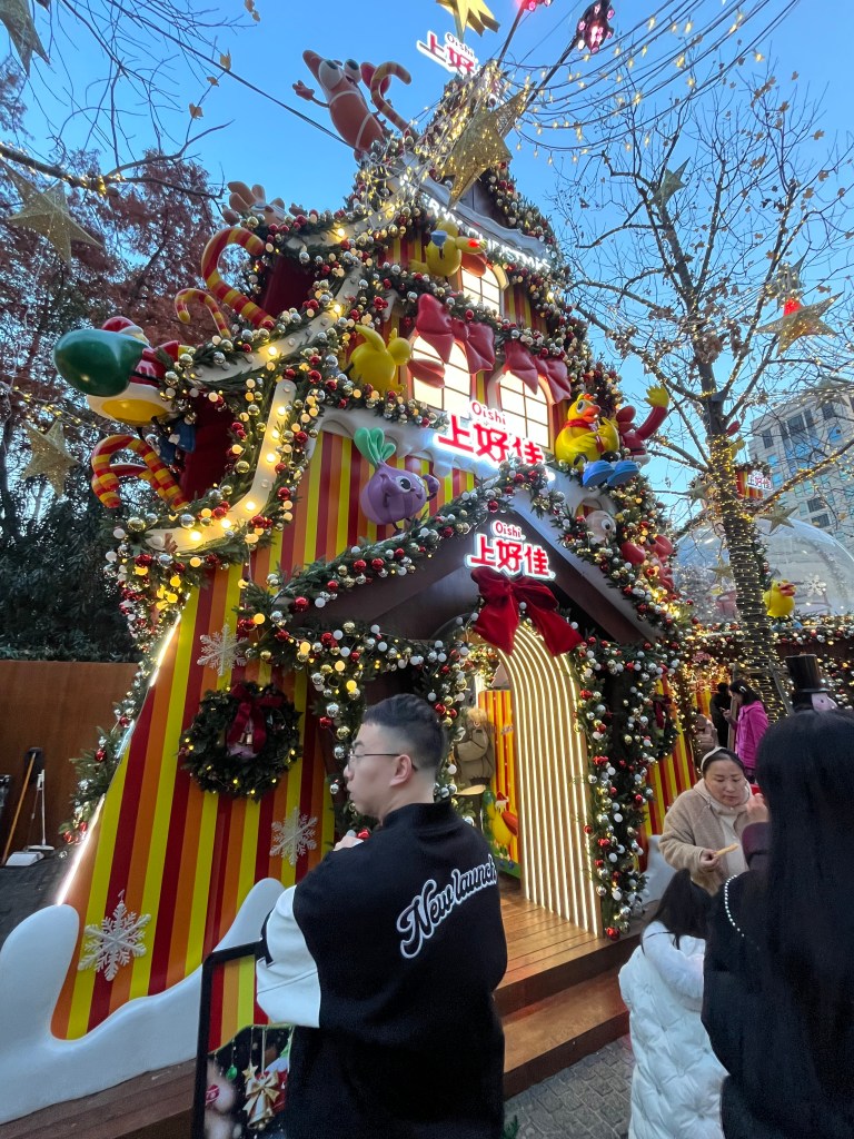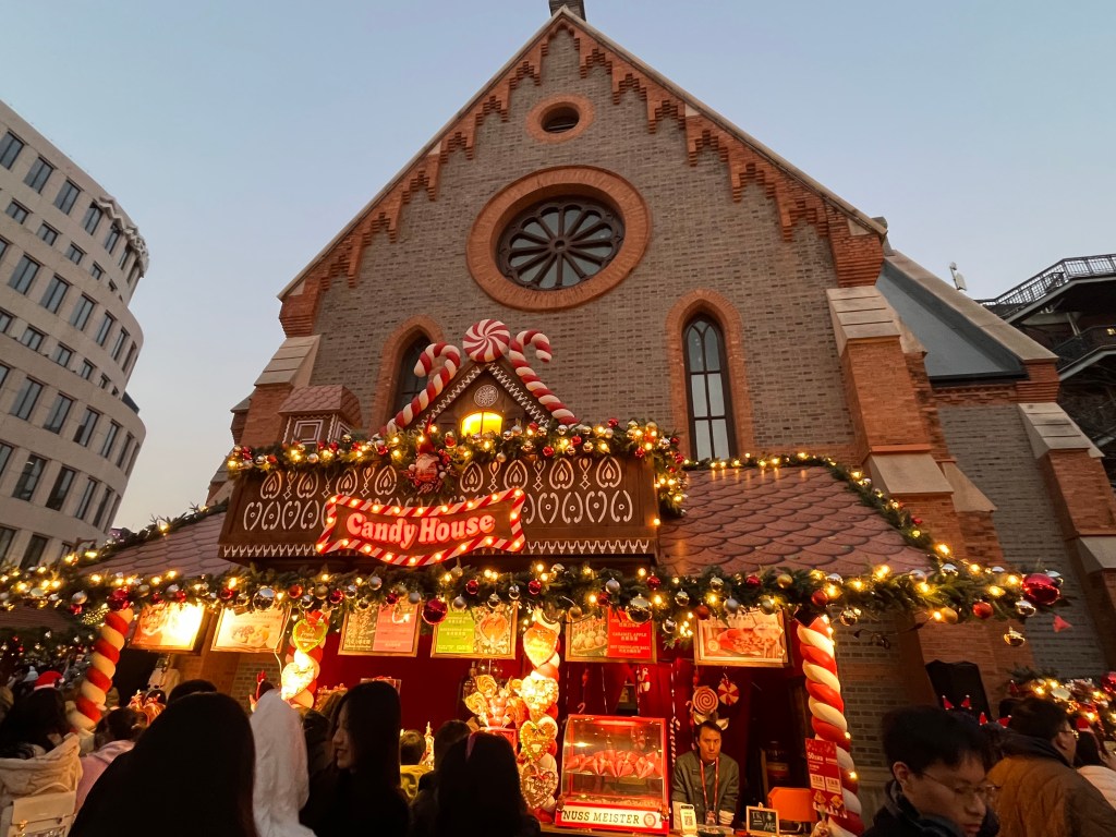 I want to say that Christmas Market is usually celebrated in Germany, but it probably became a thing here during Shanghai’s international past. Inside are vendors selling Christmas food, gifts and snacks. It even snowed soap bubbles on us!