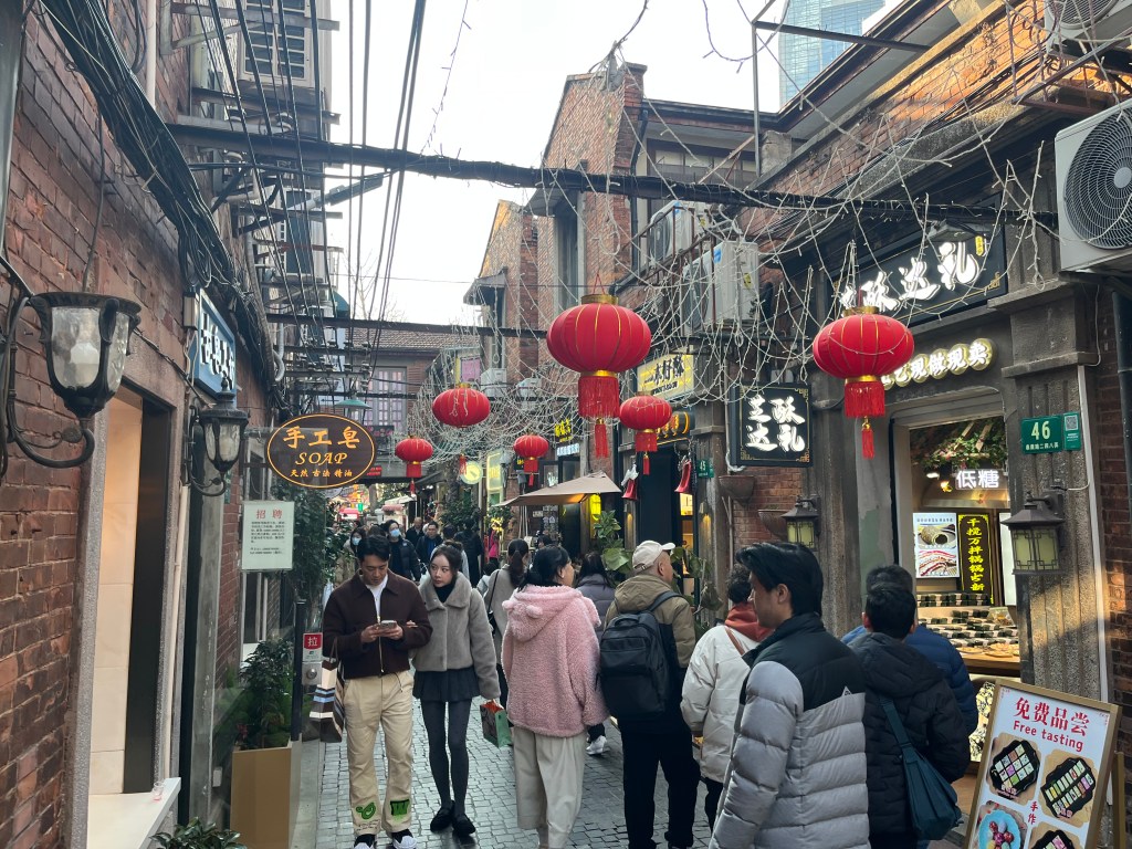 Now we’re off to Xintiandi. Xintiandi is mostly just upscale shops. We saw an alleyway entry which was made of dark stone. I think that’s it. Not interesting. Just shops.
