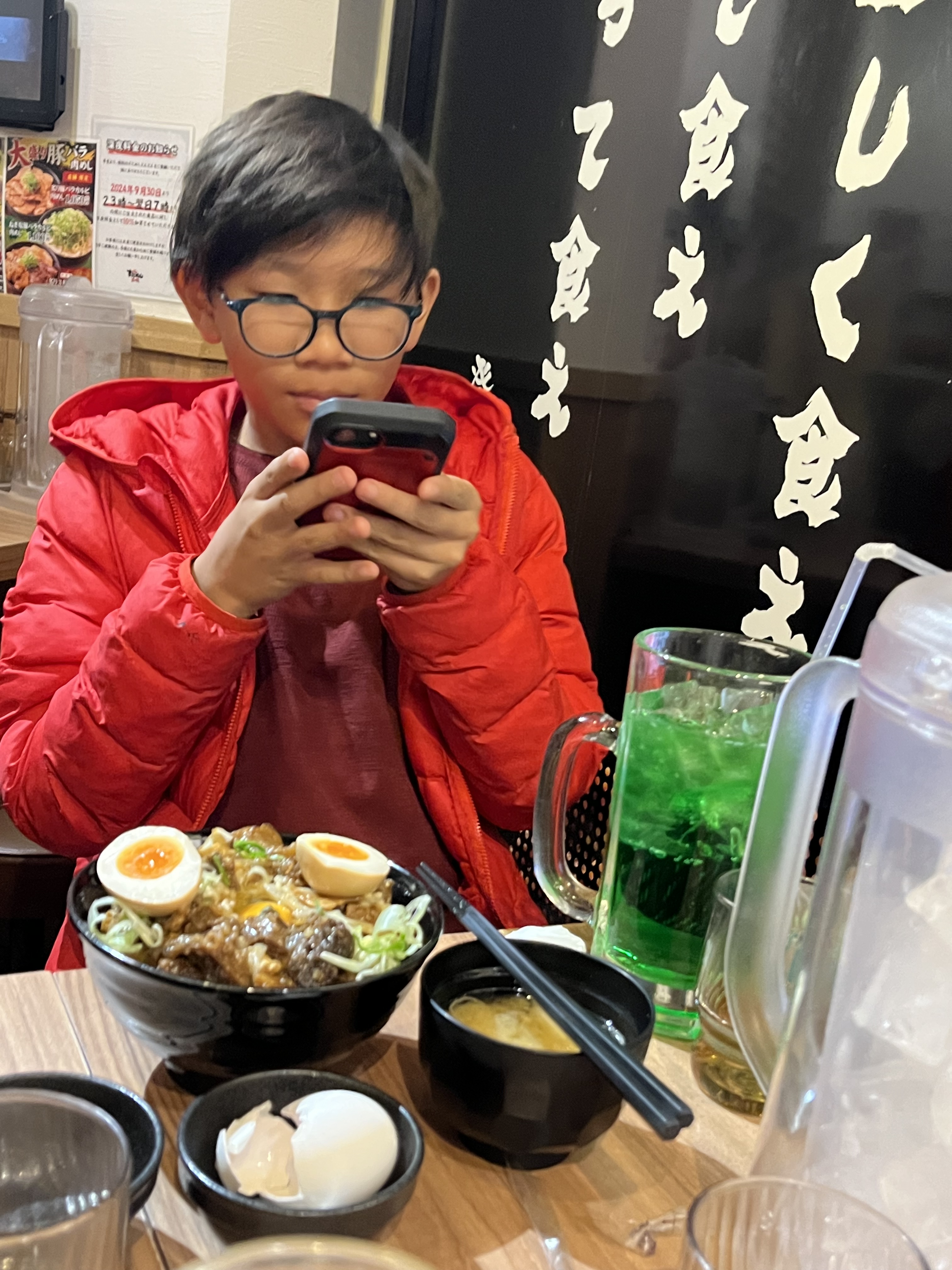 We found a stameneshi (hearty rice bowl) place at Shinjuku and were happy to throw down some dense food.