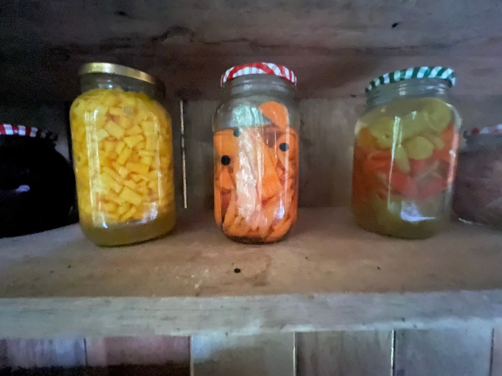 We peeled freshly boiled yams and smashed them with a smasher stick. They got mixed with fresh shredded cheese and butter to be our dinner’s main starch. Cheesy.