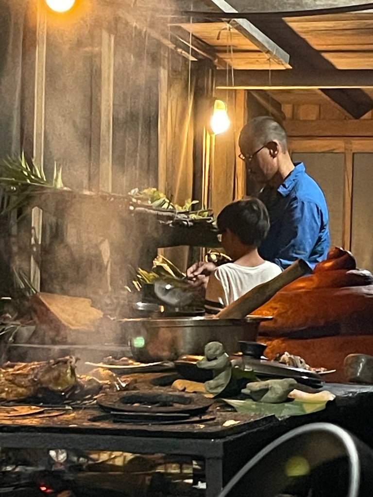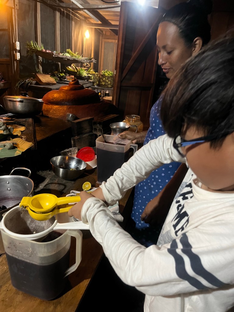 One day I told Hudson to go help cook. The first thing we did was help add citrus to a corn drink. Each meal was a different fresh fruit beverage, most of which I was trying for the first time. The drink was purple so everyone thought it was acai. No no, purple corn drink.