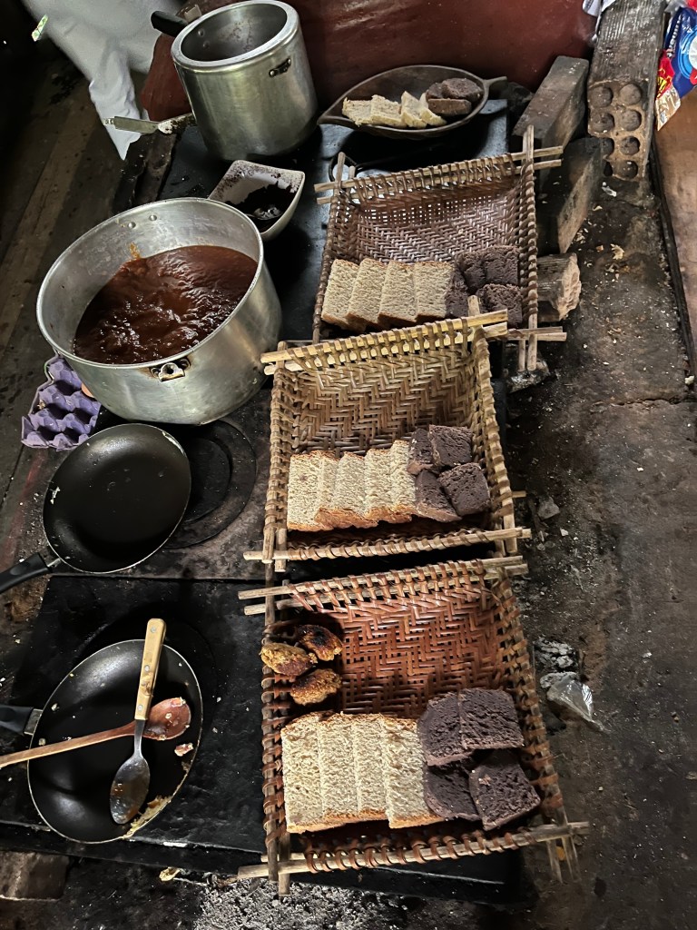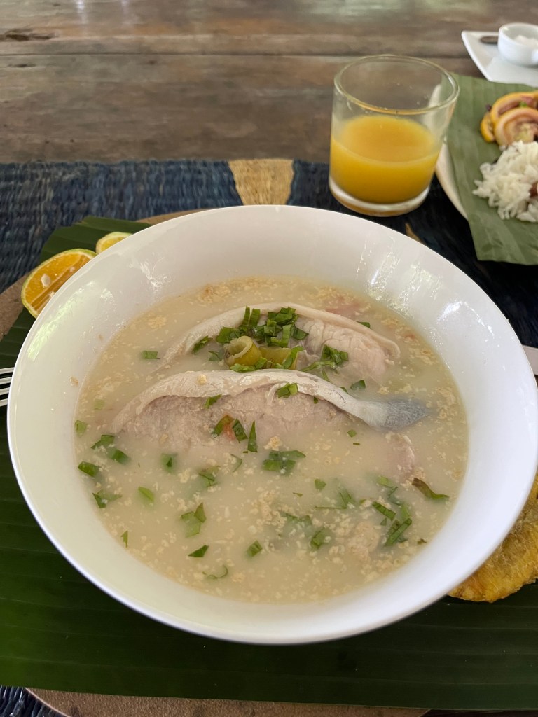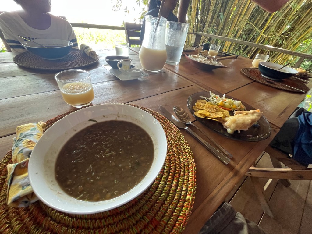 One lunch was a bean soup, chicken, and fried plantains with some cocoa juice to wash it all down.