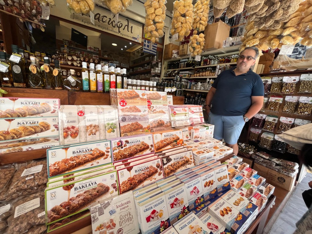 After the Palace of Knossos, we headed into town to get our first taste of (post tour) Greek culture. That means eat and look.
