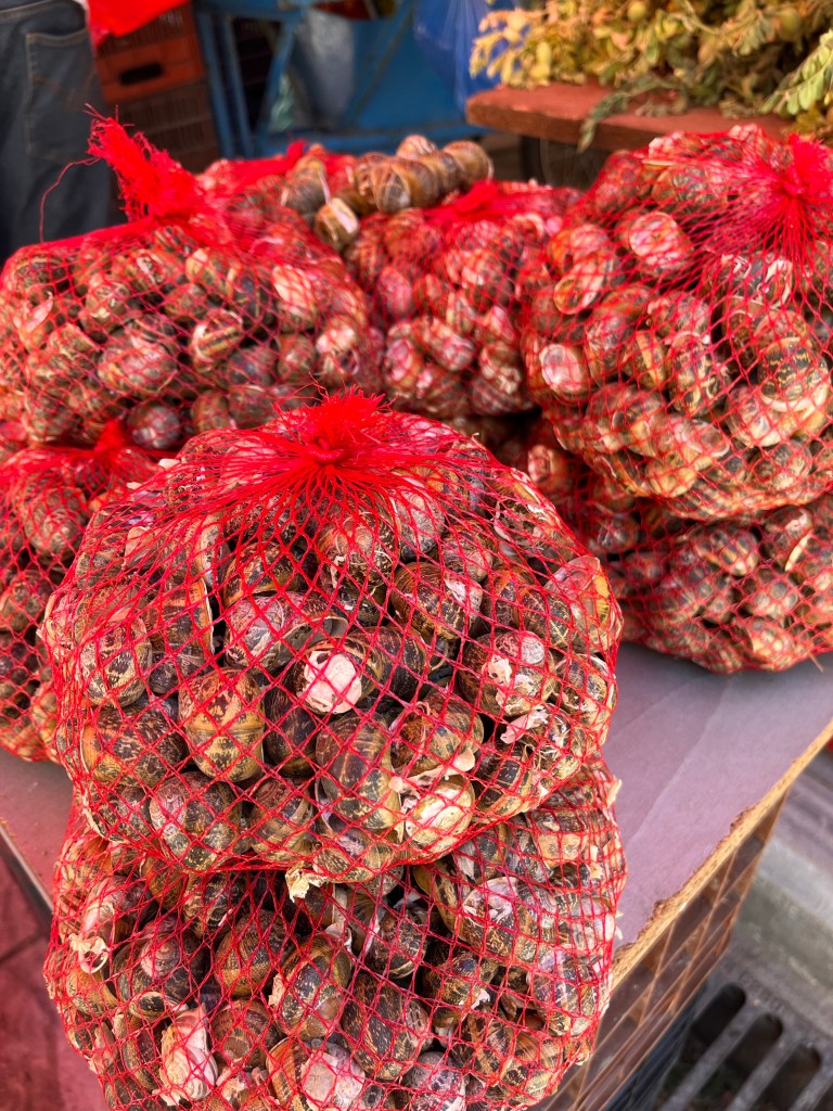 I asked this guy if you could eat the sponges at the top of the pic, everything else looked edible. He said they’re for use when showering. Loofahs. lol. All his other wares were consumable!