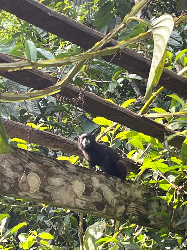 … And cue the monkey. This guy (or gal) was looking for bananas. Not fresh cut papayas-we tried. This monkey is called bebeleche for its white markings around its mouth, leches meaning milk.