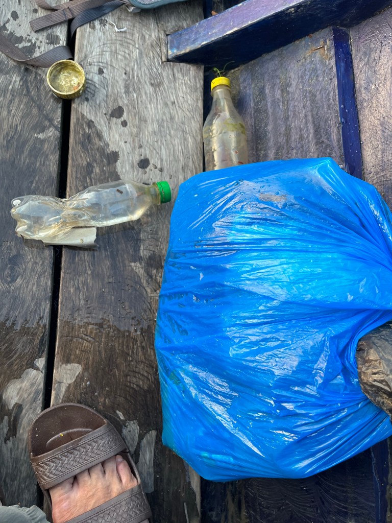 Along the way back we netted rubbish floating in the river.