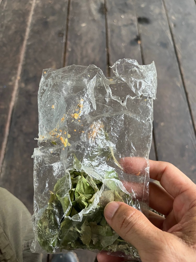 The keeper went and got my coca leaves back from the second story of the reserve structure.