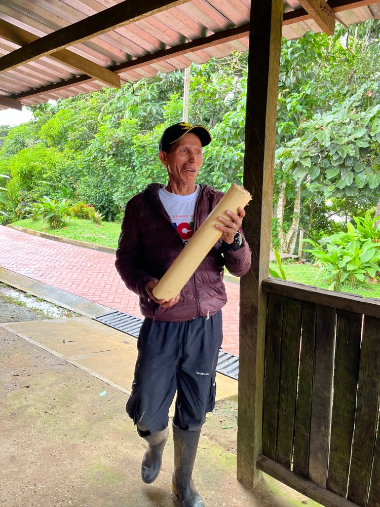 On the walk over we saw one of the kitchen staff making his way through the jungle to the lodge for work and we also saw our guide from the medicinal walk at his house. Later he showed up with a piece of wood that’ll become a part of Hudsons wa’a project. This dude came through!