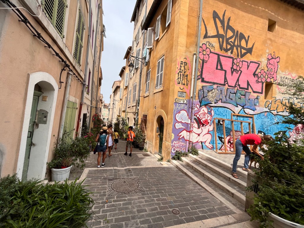 I also checked out a few hat shops along the way, and we made it to the narrow graffiti lined streets of Le Panier.