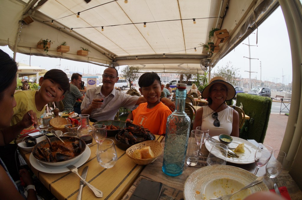 We went back down to the waterside and had a fine meal of mussels, cod aioli, bouillabaisse and the local drink pastis which is a liquorice appertif much like absinthe or ouzo.
