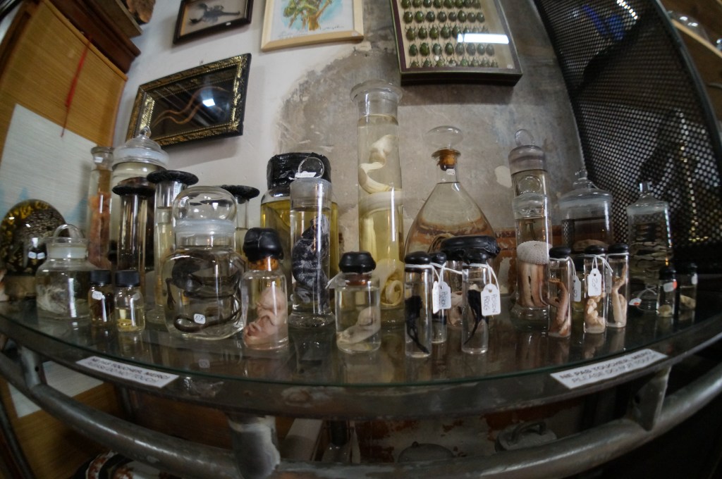 I found a cool curio shop selling small animal skeletons and various vintage items. This is the curio part of the shop.