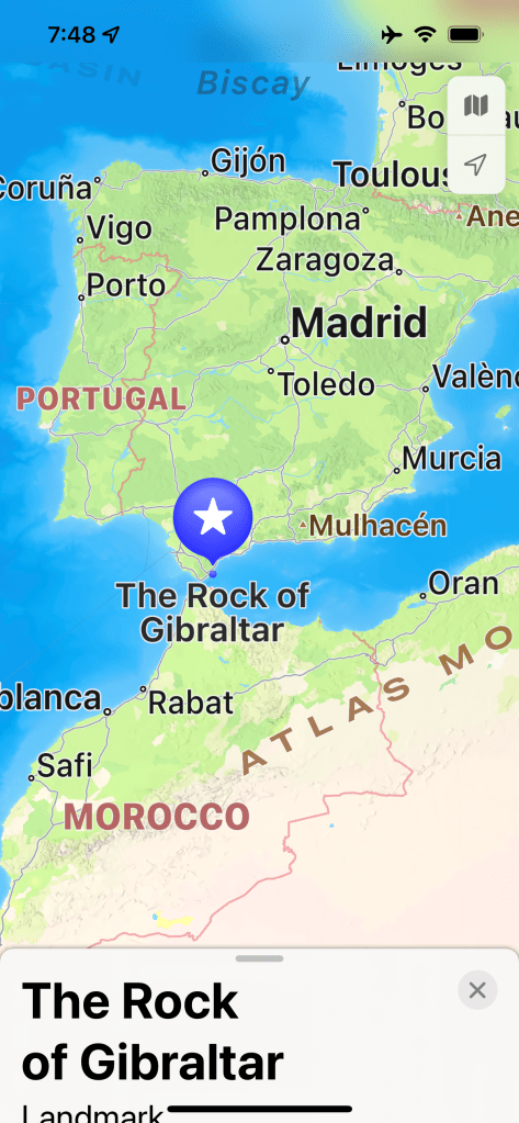 We preordered our food the night before to be brought up to our room in the morning. Gates open at 7 am for the overachievers to start going onshore. We’re doing this one on our own, so we can go whenever. The main site is the Rock of Gibraltar. Look at it on the map above, and you’ll see its strategical and geographical importance. Although at the tip of Spain, it is now a British overseas territory. The town food is a mixture of tapas and fish & chips.