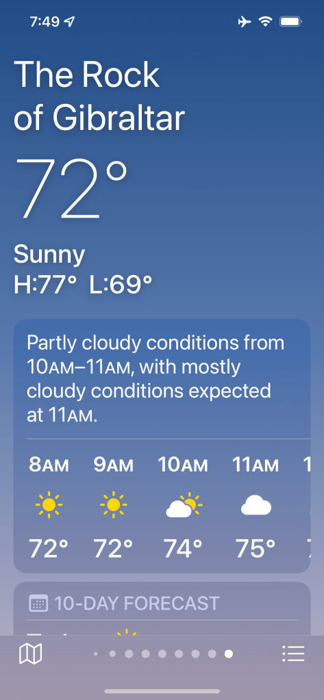 The city area is walkable and culturally a conundrum. It’s a mix of Spanish and English languages, and prices are listed in Euro as well as British Pounds. The food is the same-British pubs with fish and chips, tapas and everything in between. I even saw a place that was curry and sushi. It seemed that the spirit of the area is gin. Next visit-remember to buy combination tickets or bring hiking shoes if we want to see the tunnels next time.