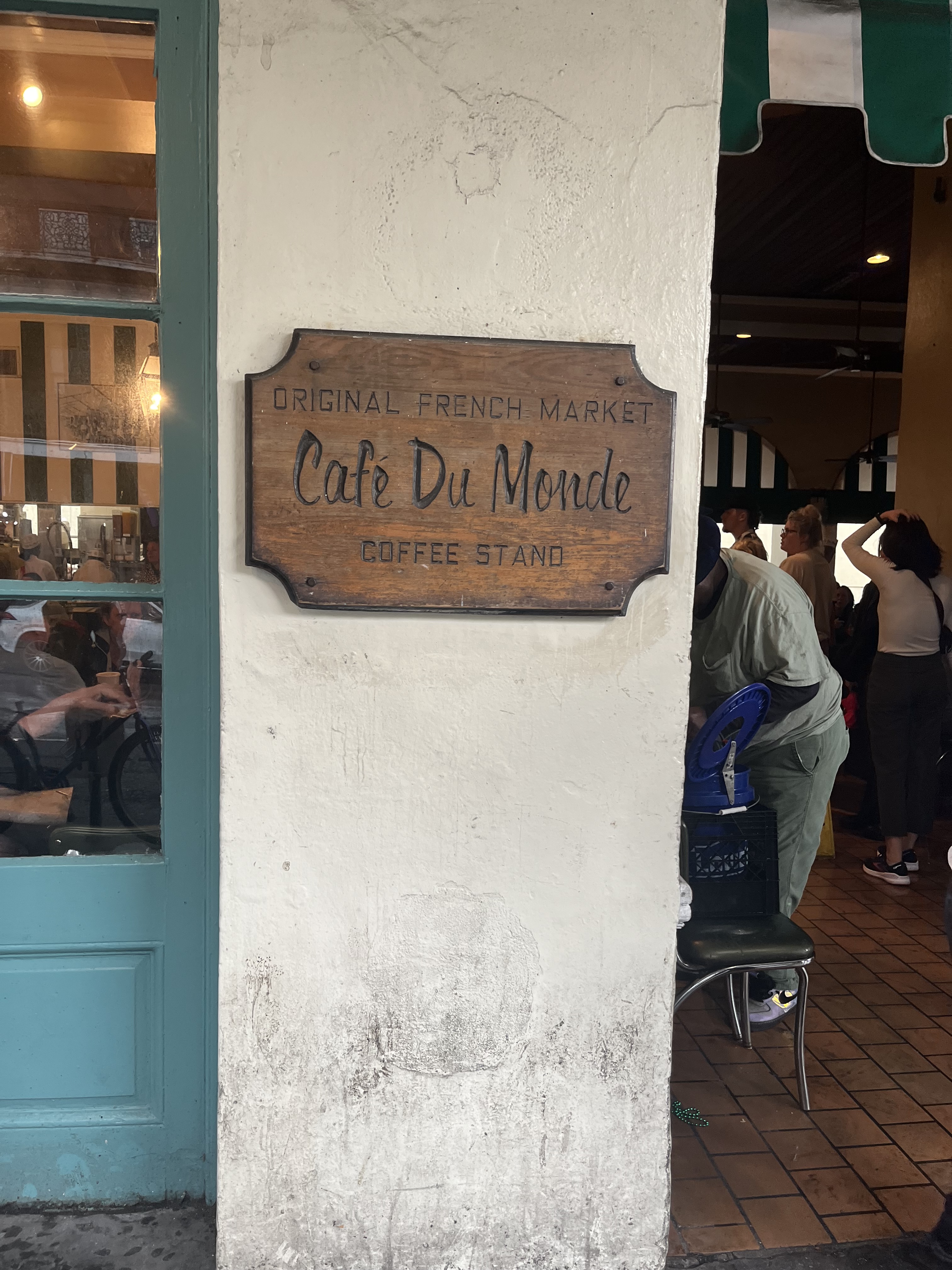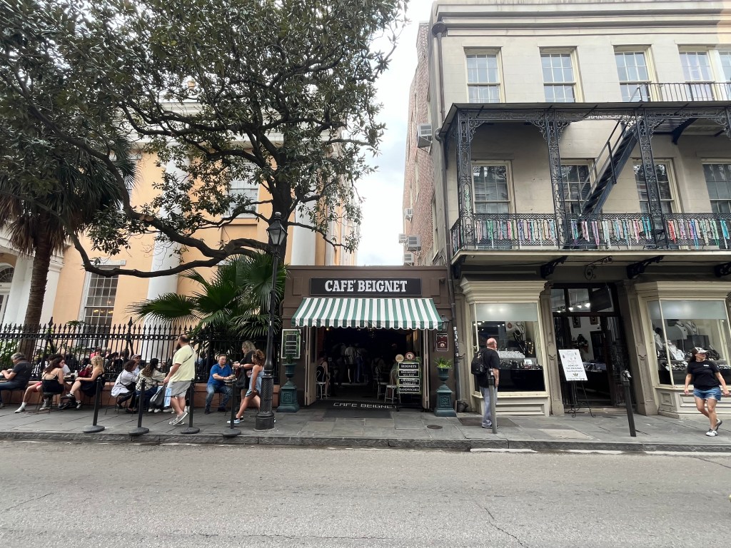 June made our headquarters a few blocks from the areas synonymous with New Orleans-Bourbon Street and the French Quarter. After getting greeted with beads and dropping our stuff off at the hotel lobby, we took a walk toward the water on the hunt for beignets at Cafe Beignet.