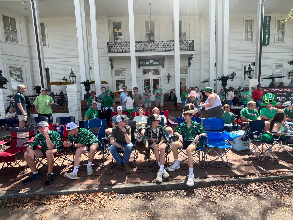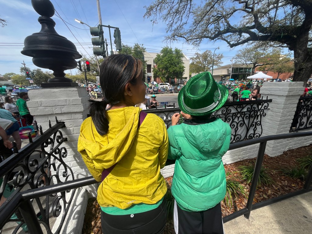 Here we go. Day drinkering. We positioned ourselves around the halfway point of the parade outside of a store called Fresh Market-a Whole Foods like place in the middle of this beautiful historically Irish residential area.