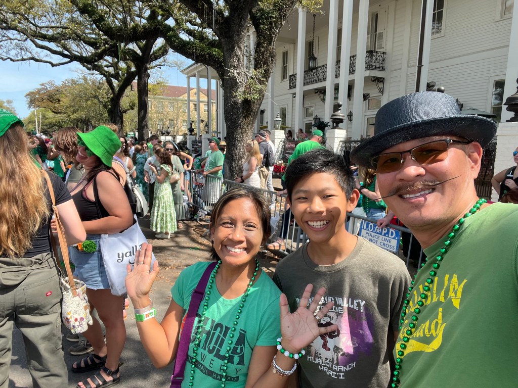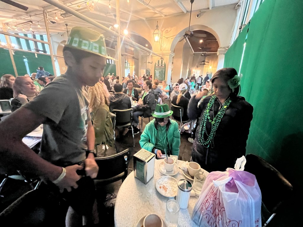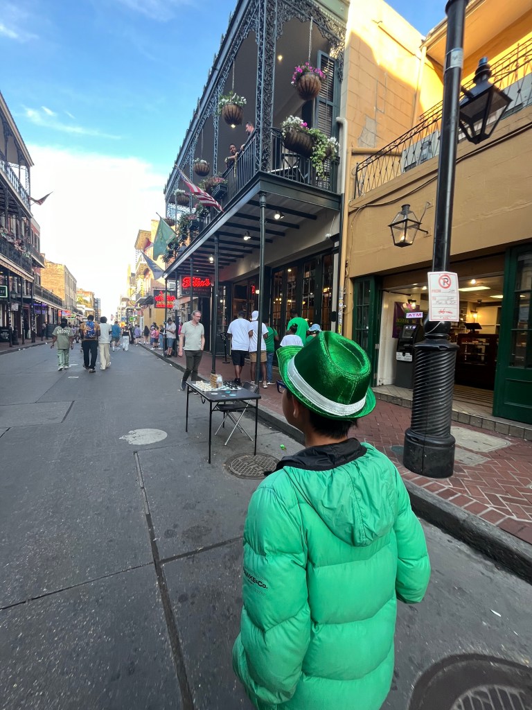 Post parade, me and Hud are off to a cooking class near Bourbon St. We probably shouldn’t have eaten so much beforehand.