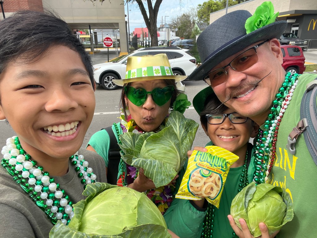 Are Funyuns Irish? Some of our final score included bead necklaces, faux flowers, real carrots and cabbages, candy, toys, snacks and anything green or consisting of a clover. I got a cool green flower for my Nawleans hat!