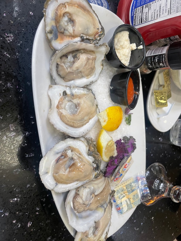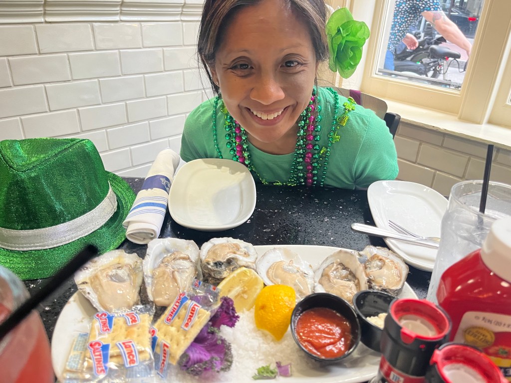 After dropping off most of our hoard of beads and cabbages and whatnot, we walked to Deannie’s for seafood.