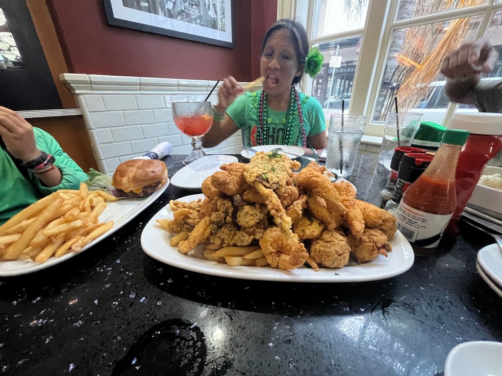 …and a pile of fried seafood-fish, shrimp, crawfish and soft shell crab
