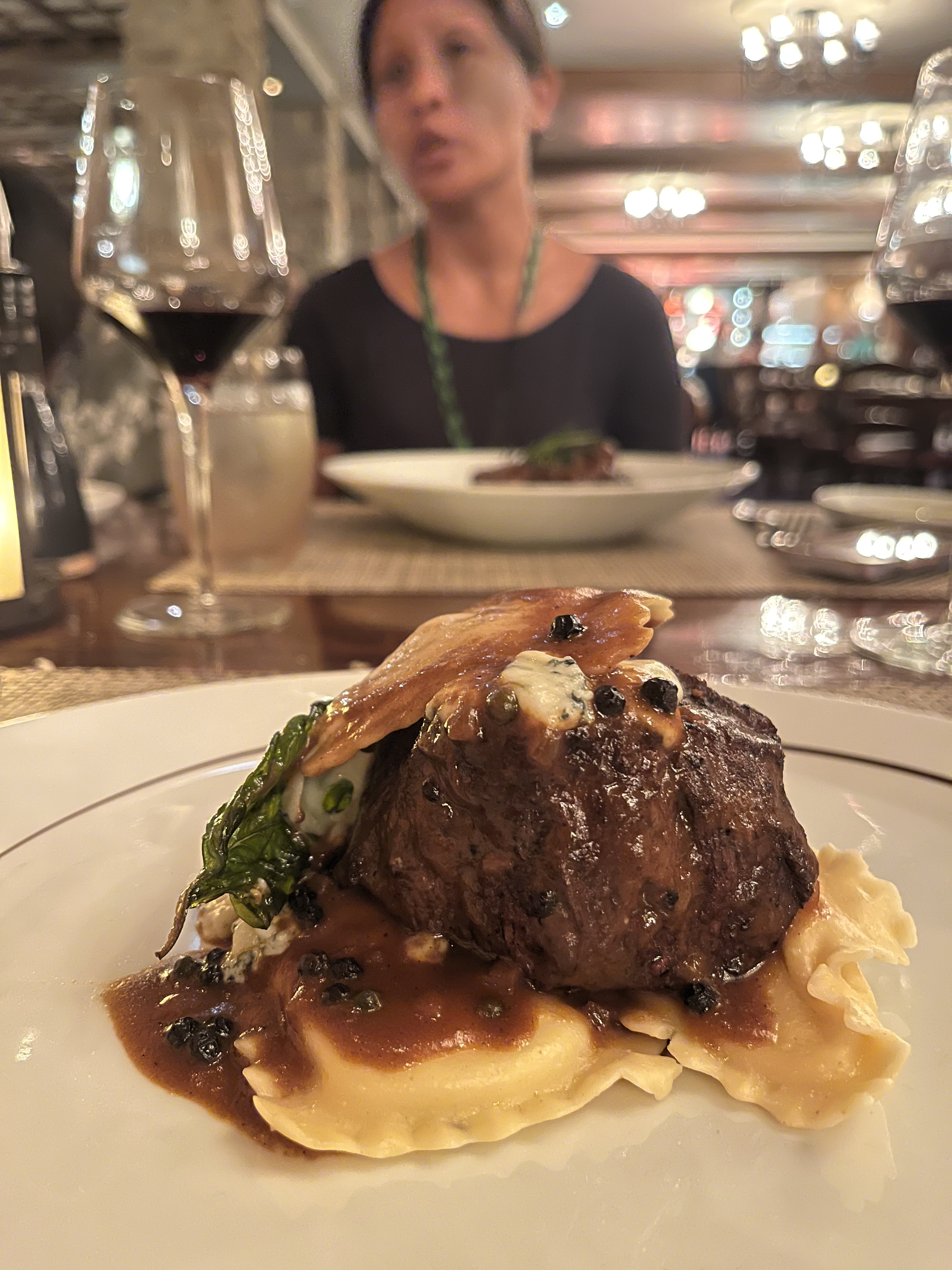 No pic on this but the table next to us had an older guy sitting at the end of the table begin to choke. I could feel the unease of the guy choking and those around him. At first I side eyed him to watch then I eventually stared him in the eyes and slowly got up. Now I was engaged. What to do? Heimlich? No, palm strike! Would this be my moment of Scouting saviourship? A time to remember forever while reliving the tale around a scout campfire? I walked over and was ready to bend him over and palm the center of his back when some of his dinner party looked at me and said they had two nurses present in their dinner party. Oh well I’s ready.