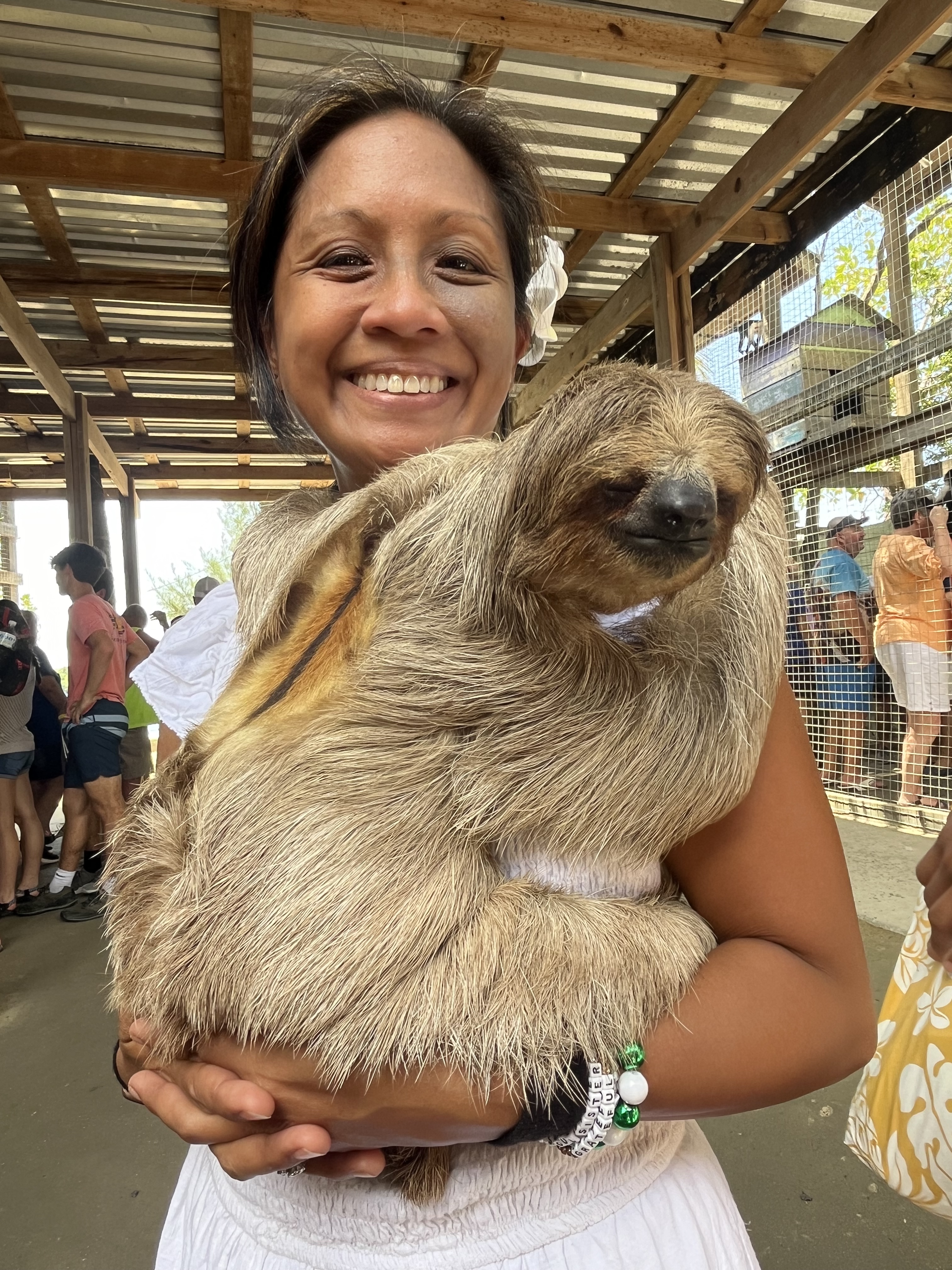 June loves sloths. Our first stop was Daniel Johnson’s Hangout. So hot and so many tourists waiting.