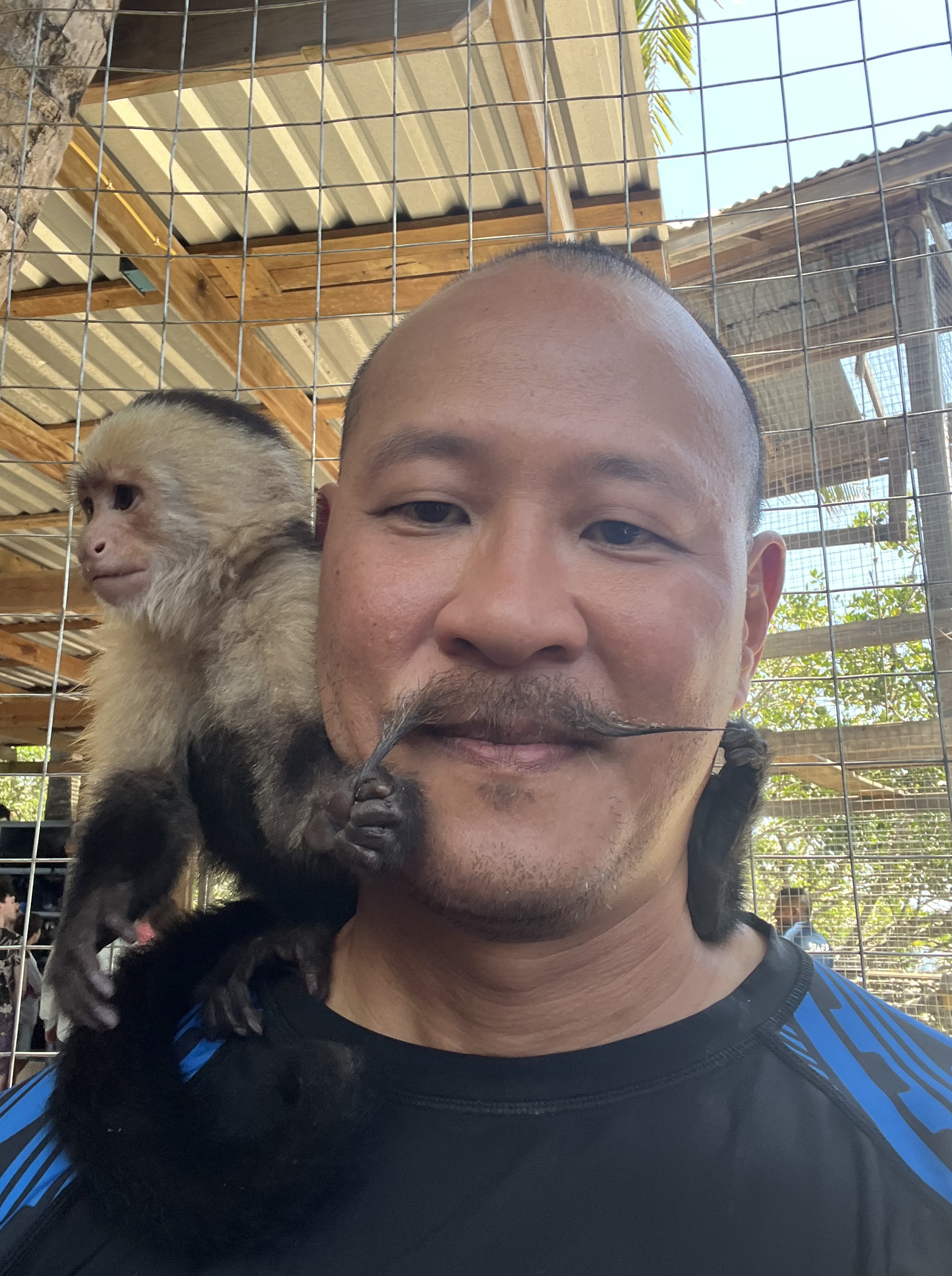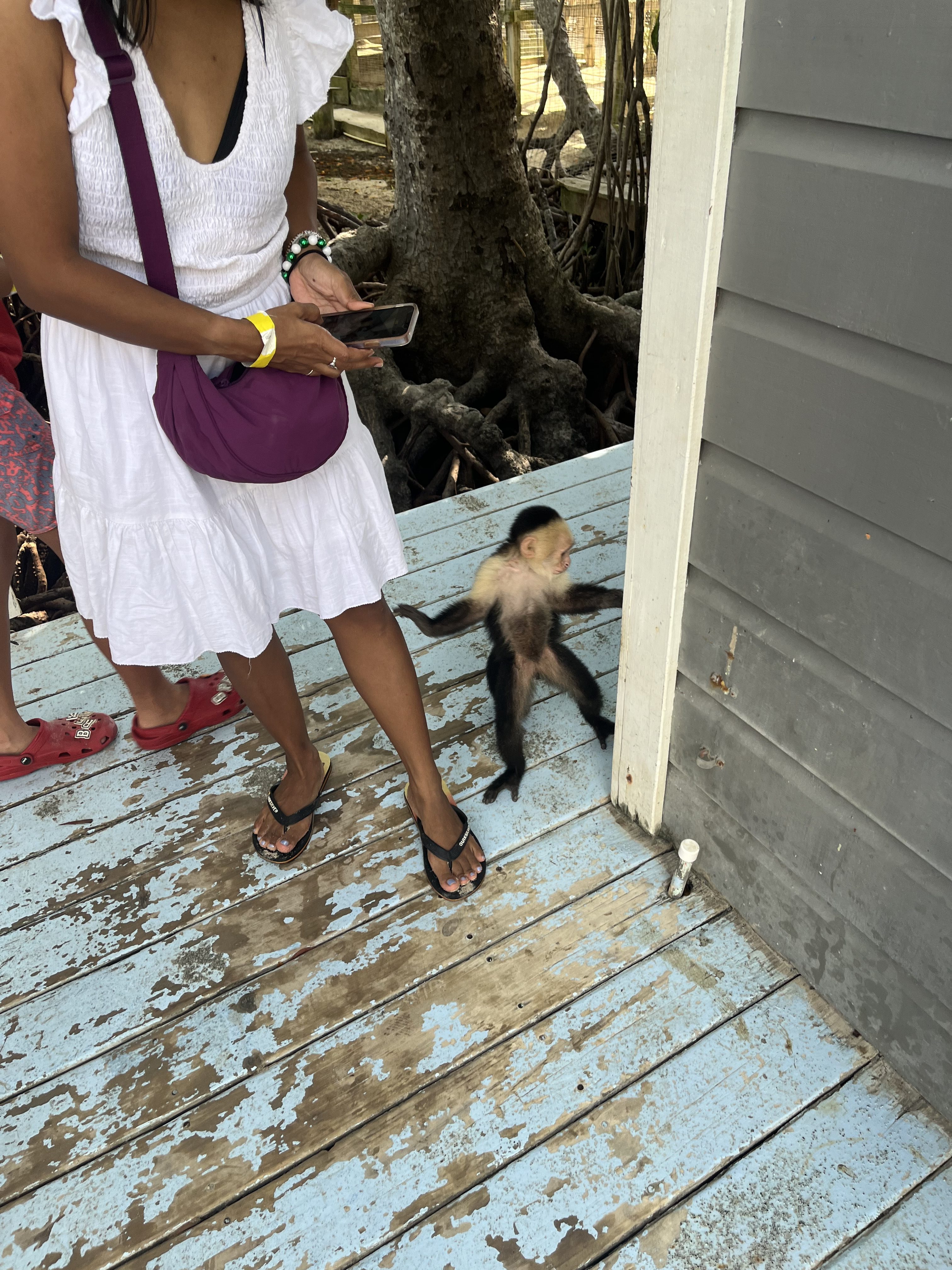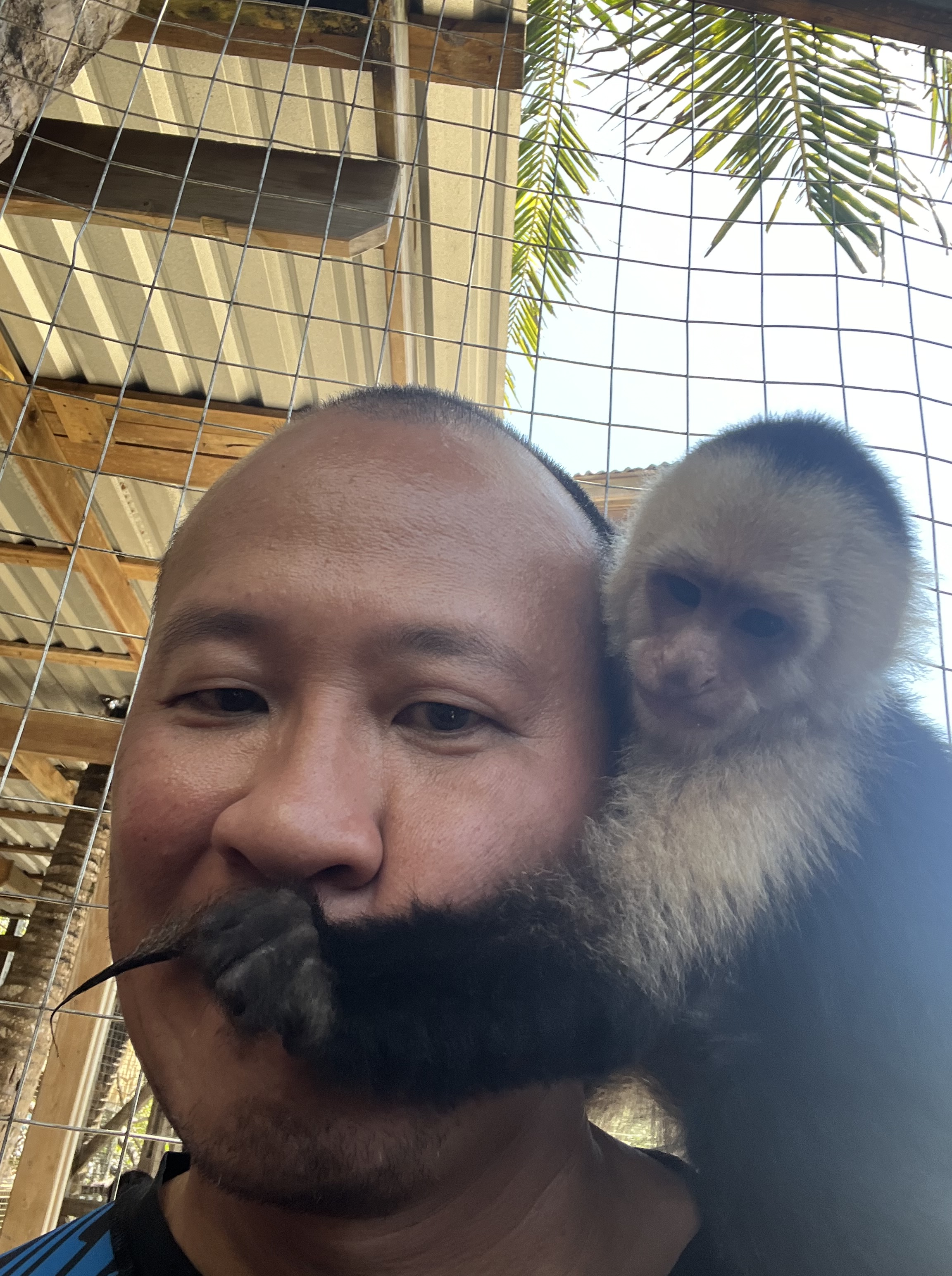 I guess it was just a liability thing. We definitely got to handle the animals. After seeing sloths we went into the cappuccin monkey enclosure and stood in a ring while the monkeys ran around and basically had their way with us. My moustache was popular.