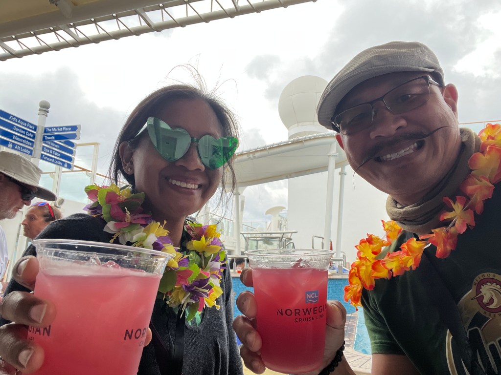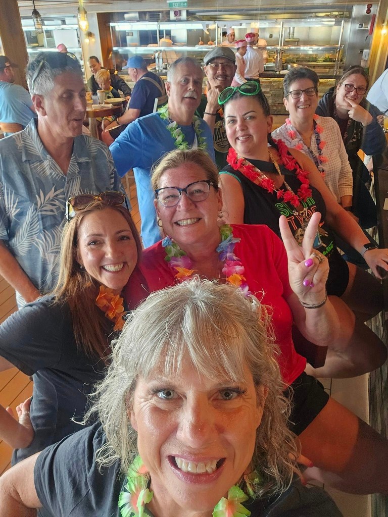 Before boarding June found a FB group for our specific cruise, and a couple of cruise regulars decided to put together a Hawaiian style meet and greet. Ready for mayhem.