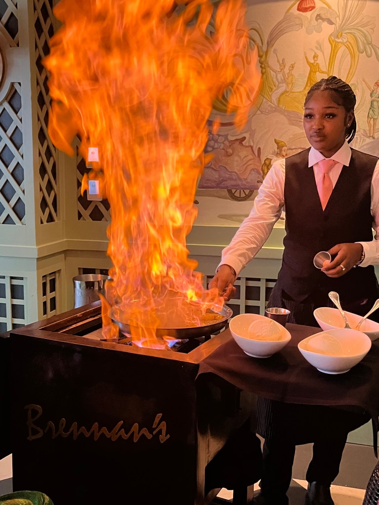 At the end of our meal I saw that they had bananas foster on the menu. I thought to myself, “Let’s see what their version is like.” Turns out this is the birthplace of bananas foster lol. While our server made the dessert at our table, she told us the story of bananas foster and how it originated right there!