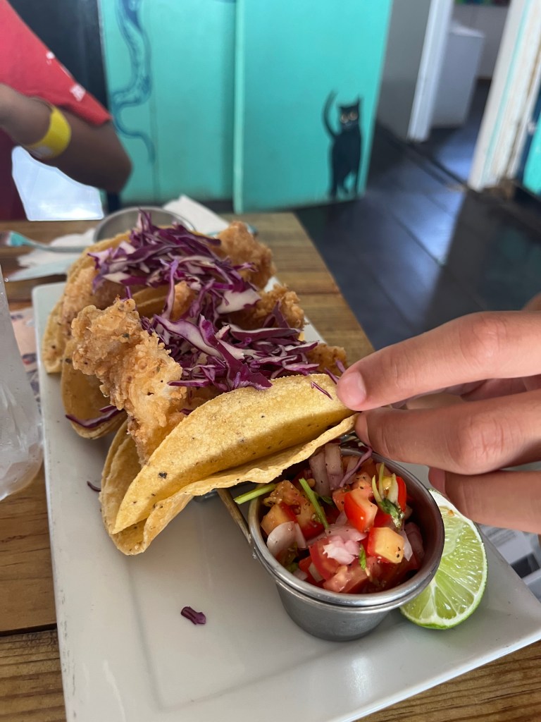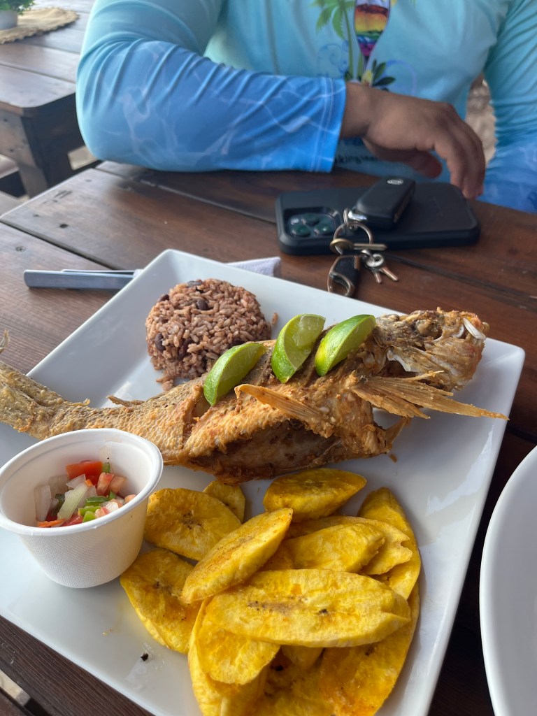 For lunch we stopped off at Omar’s Creole seafood for red snapper with coconut sauce, fish tacos and grilled chicken. Two beers, two waters and a juice later our bill was about $56 USD.